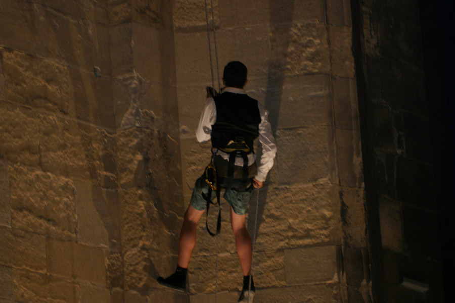 Au plus près du patrimoine de Bordeaux grâce à la technique des ouvriers cordistes sous les conseils de la compagnie Adrénaline, les éleves du Lycée Saintes Famille Saintonge ont pu mettre en valeur leurs compétences professionnelles dans une "danse verticale" pour offrir un spectacle sur les aplombs de la flèche Saint Michel à plus de 20 mètres du sol.