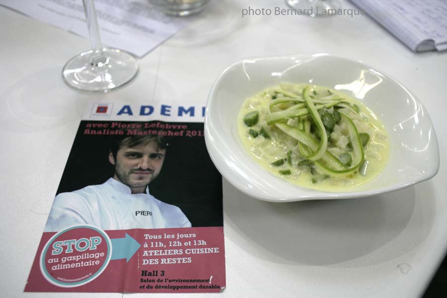 C’est à l’initiative de l’ADEME que Pierre Lefebvre fraîchement nanti de son CAP de cuisinier acquis à Talence après avoir été finaliste de MasterChef 2012 dispense ce cours de cuisine très "écolo". Les chiffres du gaspillage alimentaire dans nos sociétés sont effrayants car on achète sans discernement et on jette parce qu’on a tout oublié au fond du réfrigérateur. A l’heure où la crise sévit il est bon d’apprendre à faire des économies sans spécialement se priver.