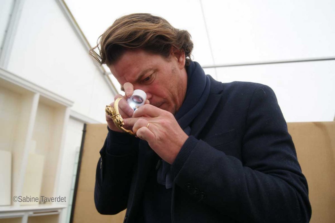 Pour cette sixième édition des Journées Nationales de l’Expertise du groupe Ivoire, une cinquantaine de personnes sont attendues pour présenter des objets rares ou insolites. Sous le chapiteau, Alexei Blancky est d’ailleurs en pleine expertise d’un bracelet et d’une bague qu’une jeune femme a amenés, reçus après un héritage. « Pour les bijoux, je les pèse, regarde les poinçons et si ce sont des bijoux étrangers qui ne sont pas poinçonnés, j’ai des acides pour tester l’or, des testeurs de diamant, une loupe pour l’ivoire… Les gens qui viennent sur ce type d’événement sont des gens que l’on a pas l’habitude de voir en salle des ventes, qui craignent un peu de faire estimer leurs biens car ils ont peur que cela soit payant alors que tout le monde peut venir directement à l’Hôtel des Ventes pour que nous leur disions combien cela vaut. »