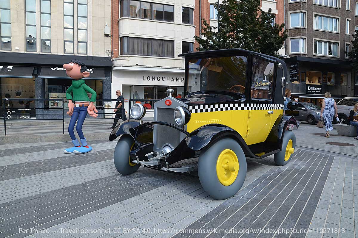 - Statue de Gaston et sa voiture sur la place Verte à Charleroi.