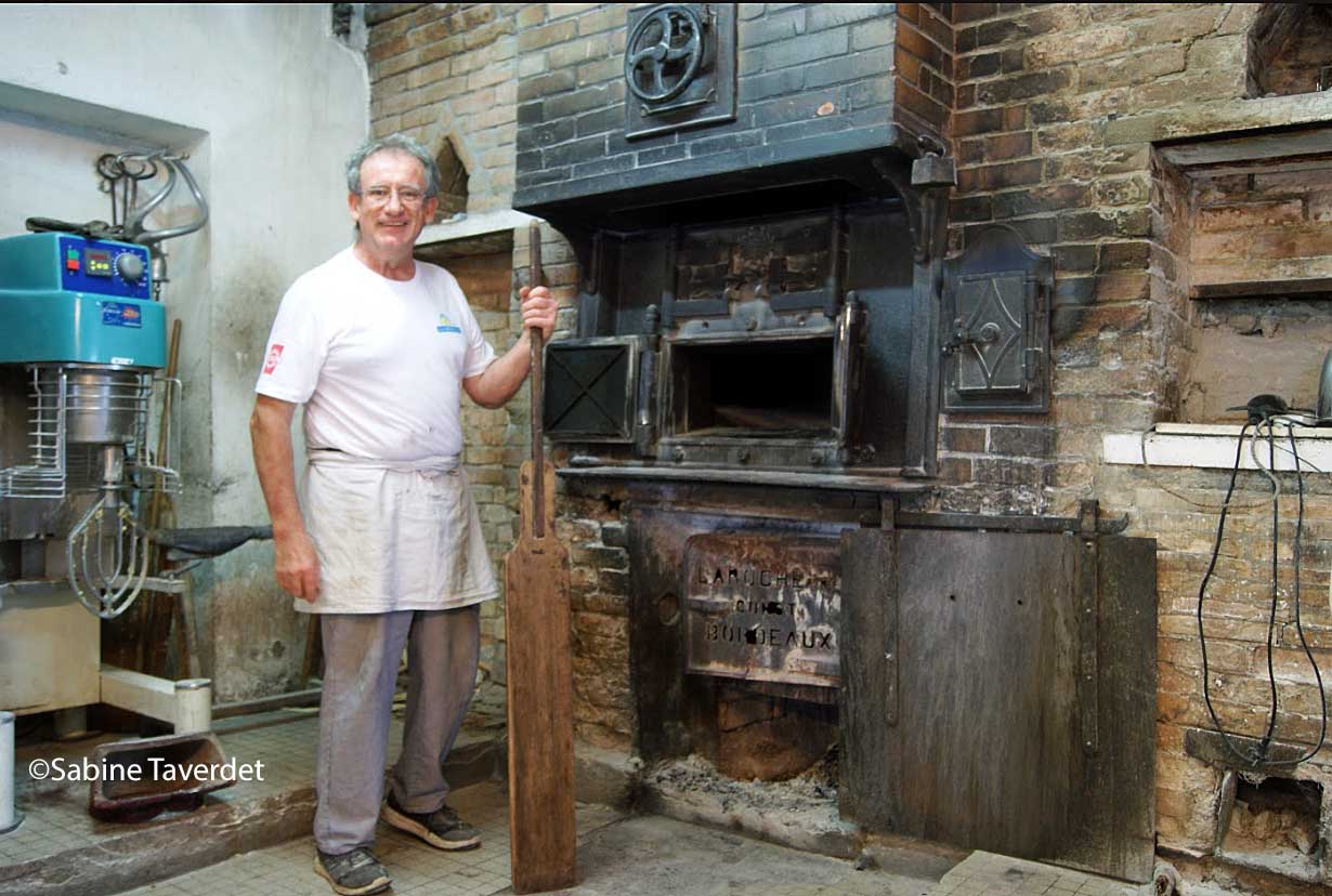 Après le travail au chai, la famille Cardoso ne manque pas de traverser la route pour saluer Philippe Meynard, le boulanger du village. Après avoir quitté un travail de responsable commercial pour devenir artisan, c’est sans surprise qu’il s’inscrit dans la préservation des techniques ancestrales car le « fabricant de pain à l’ancienne » comme il se définit lui-même, n’est autre que le cousin de Florence. « La propriété viticole et la boulangerie était à notre arrière-grand-père. Les bâtiments faisaient partie d’un ensemble. Après le partage, de ce côté de la famille nous sommes tous nés boulangers. Mon papa m’emmenait travailler avec lui dès 3 ou 4 ans, comme le vin pour l’autre partie de la famille ! » explique Philippe en mettant du bois dans le four de fonte. D’une profondeur de 4m50, le pain cuit ici dans la buée à même les pierres réfractaires de l’antique foyer de 1898. Vendu dans les enseignes « la ruche qui dit oui » jusqu’à bordeaux, le pain à l’ancienne du boulanger se garde jusqu’à 7 jours et permet ainsi d’ajouter un peu plus de l’héritage familial dans un menu agrémenté de vin de Belvès-de-Castillon.