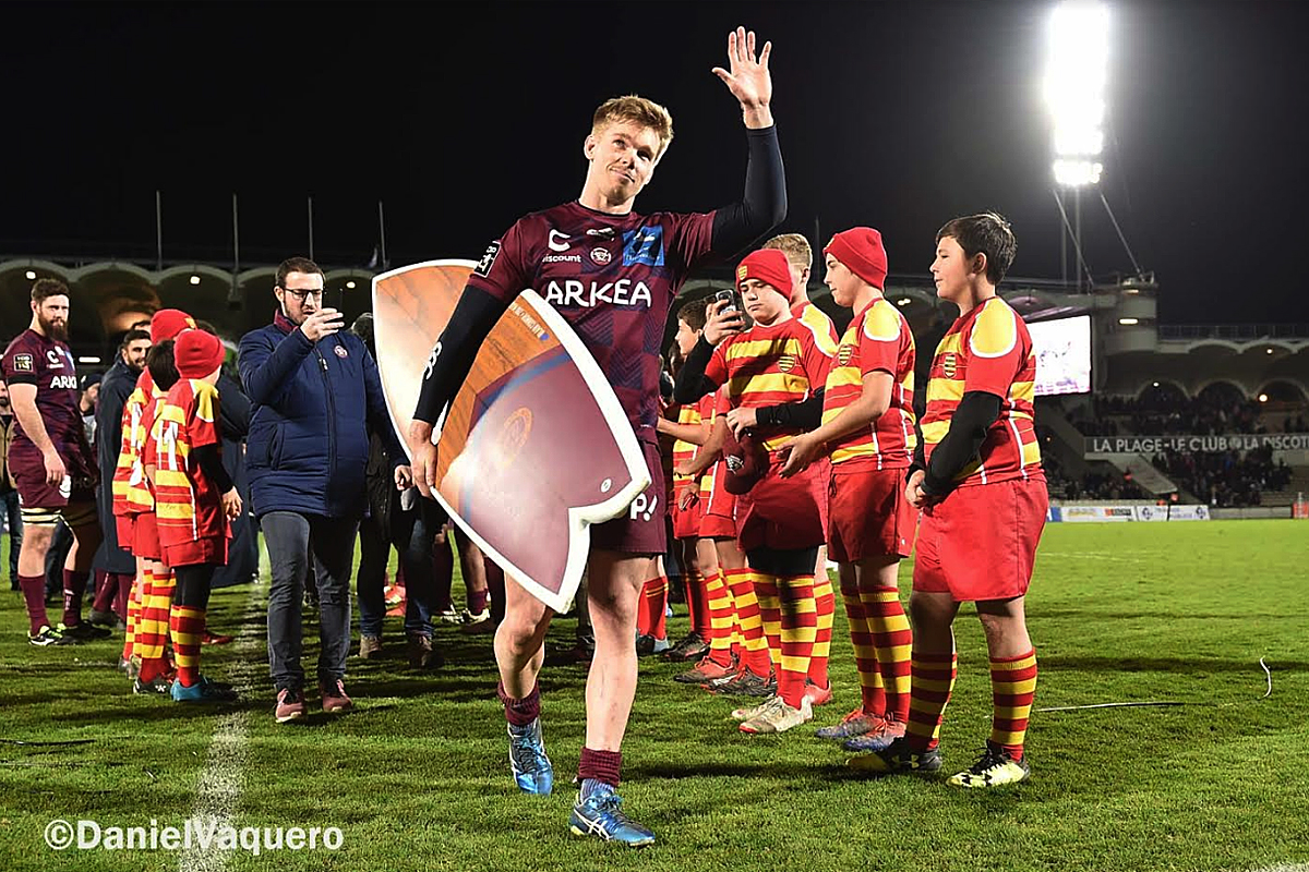 La dernière partie de championnat s’annonce difficile avec les déplacements à Clermont, Montpellier, le Racing, Toulon, Lyon, il faudra battre le Stade Toulousain à la maison et La Rochelle à l’extérieur pour clore la saison régulière avant les phases finales que Bordeaux aimerait bien accrocher avec l’espoir de pouvoir accéder à une demi-finale à la maison au Matmut Atlantique. Le chemin comme on peut le voir est semé d’embûches et il faudra aller chercher quelques victoires à l’extérieur et c’est là où l’on pourra mesurer la progression de l’équipe face à des écuries huppées. Sur ce match on a pu constater que Paiva depuis qu’il a signé son contrat professionnel fait des progrès étonnants et qu’en tant que pur produit bordelais, il est un ballon d’oxygène pour la première ligne qui en a bien besoin avec ses nombreux blessés. L’autre élément très prometteur pour l’UBB est le champion du monde U20 Cameron Woki qui un moment utilisé en seconde ligne par Teague était en train de lui rogner les ailes qui aujourd’hui lui repoussent tant il a été déterminant sur ce match en troisième ligne, avec son compère de la première ils ont fait étalage de leur volonté de vaincre et de leurs qualités. Après le match Blair Connor, le dernier historique de la montée en 2011 a été honoré pour ses 200 matchs joués sous la tunique de l’UBB et il lui a été offert une planche de surf, sport qu’il pratique tout au long de l’été et qui a peut être influencer son choix de jouer à Bordeaux avec la proximité du spot de Lacanau.