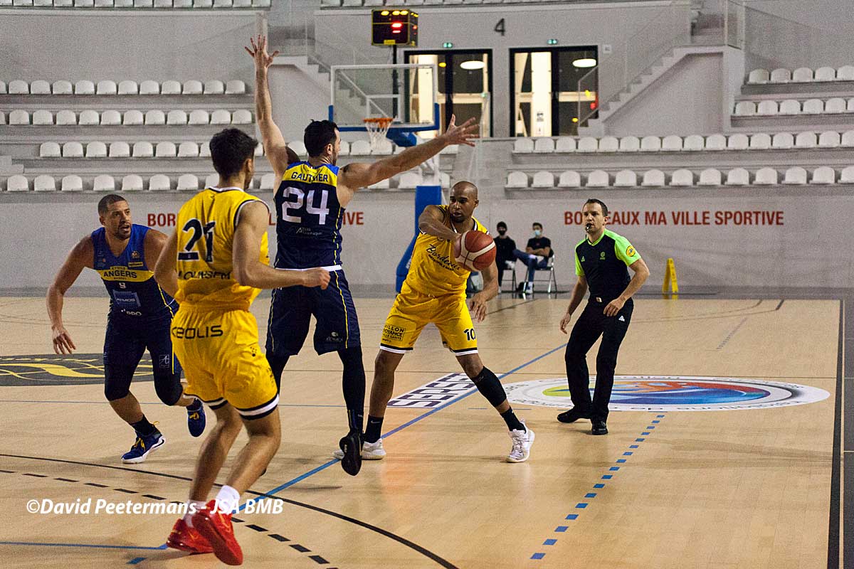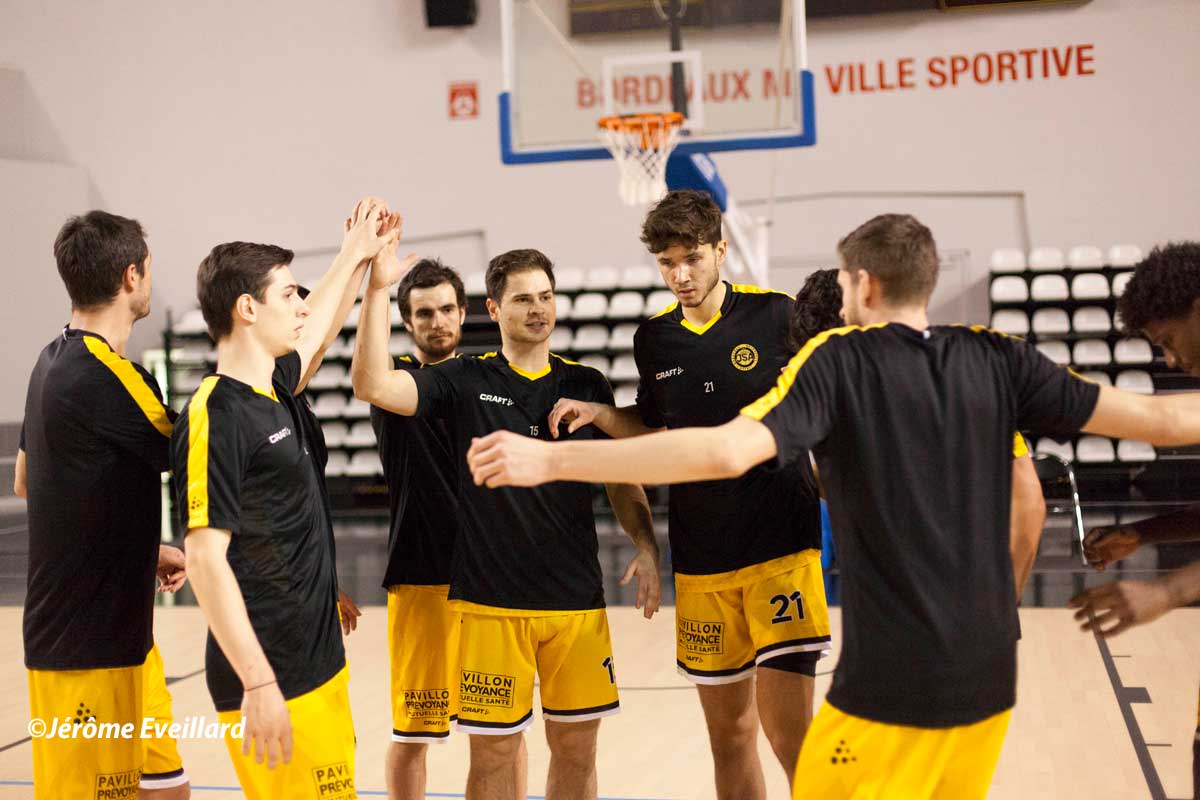 Les jaunes et noirs devaient encore une fois s’appuyer sur les joueurs de l’équipe 2 pour compléter son roster professionnel. Dès l’entame du match, un combat physique est rapidement engagé, une obligation pour nos bordelais s’ils souhaitent créer la surprise. Ils trouvent des solutions face à la défense de Tours à l’instar de Jeffrey Dalmat qui rentre un joli trois points en transition. Le jeune Kevin Mbaitoubam – intégré dans le cinq de départ – tente aussi sa chance et remporte deux de ses duels en un-contre-un. Les artilleurs de l’UTBM connaissent une belle adresse loin du cercle avec six tirs à trois points marqués dans ce premier quart-temps. Le jeu collectif déployé par les adversaires des JSA oblige en fin de quart-temps Joachim Duthé à utiliser un premier temps-mort pour stopper l’hémorragie. Le vétéran Thibaut Lonzième permet à Bordeaux de ne pas prendre trop de retards sur Tours. Cependant, le score à la fin de ce premier acte est de 20 à 28.