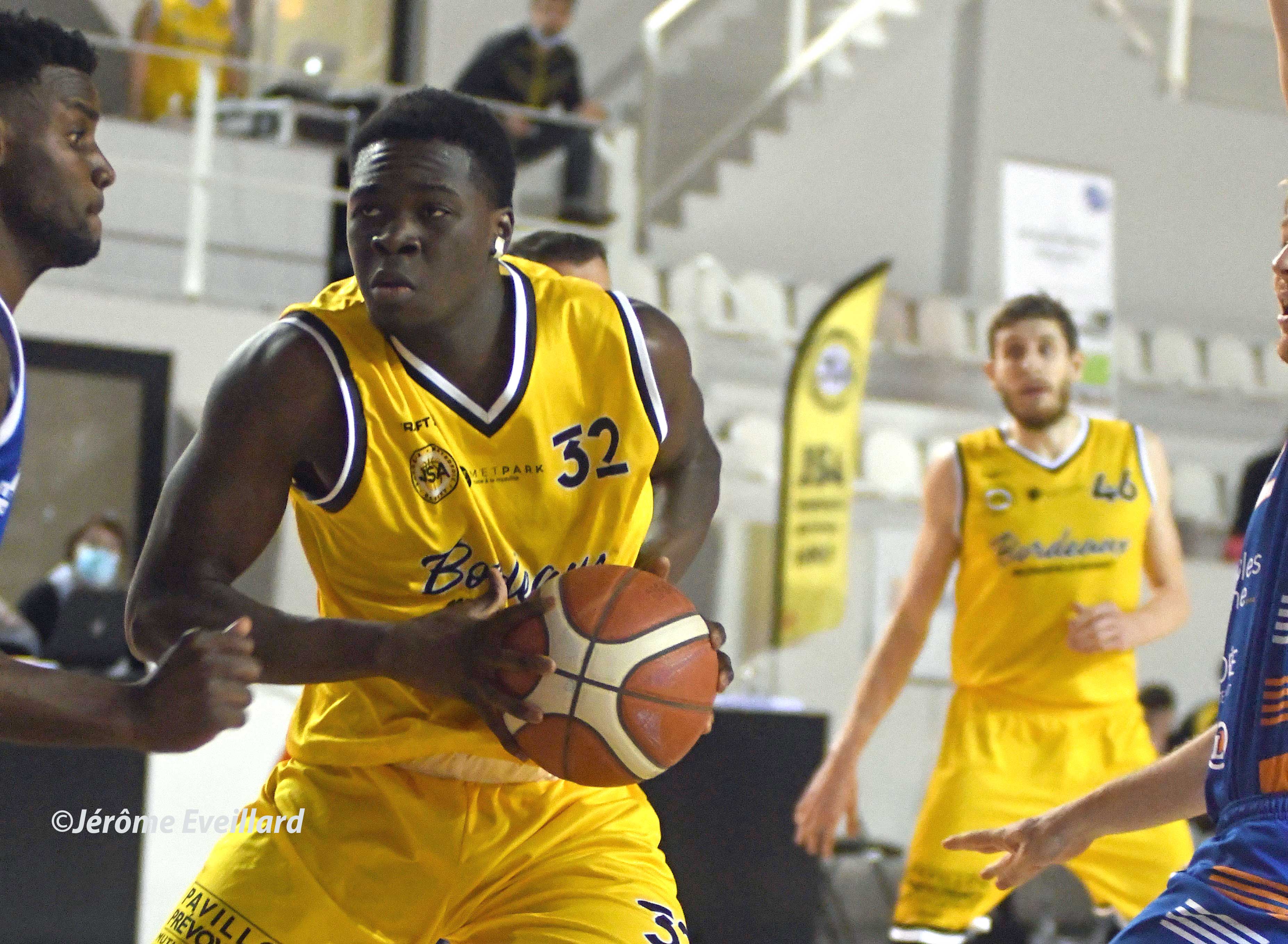 Tours, qui commençait à se réveiller en fin de premier quart-temps, poursuit son travail d’une main de maître. En défense, les joueurs en rouge sont autant concentrés qu’agressifs et empêchent aux bordelais de développer leur jeu. En attaque c’est encore pire ! De près comme de loin, leur réussite n’est à n’en plus finir et leur présence au rebond leur offre de précieuses secondes chances. Les points sont magnifiquement répartis côté visiteur. Huger, Dargenton et Ateba culminent tous les trois à 10 points ou plus. L’arrière Ralph Temgoua les accompagne également très bien avec deux trois points rentrés coup sur coup dans ce deuxième quart-temps. Quentin Hanck, absent depuis le début du match, inscrit enfin ses deux premiers tirs du parking qu’il affectionne tant ! À la mi-temps, le score est lourd mais malheureusement attendu. Les tourangeaux, plus inspirés en attaque mènent 56 à 42. Si Bordeaux veut revenir, il faudra s’imposer davantage dans les raquettes. Thomas Van Ounsem a, pour le moment, une feuille de statistique vierge au scoring et se fait manger en défense par plus expérimentés que lui. Et ce n’est pas le quarantenaire Michel Jean-Baptiste-Adlophe – dit JBAM – qui vous dira le contraire !