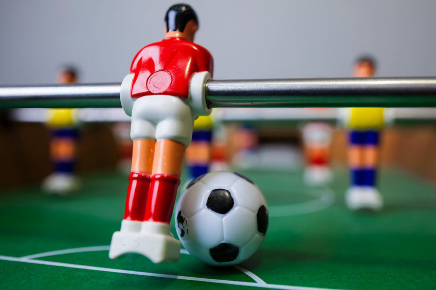 baby-foot, football de table. Équipe sportive, joueurs de football.