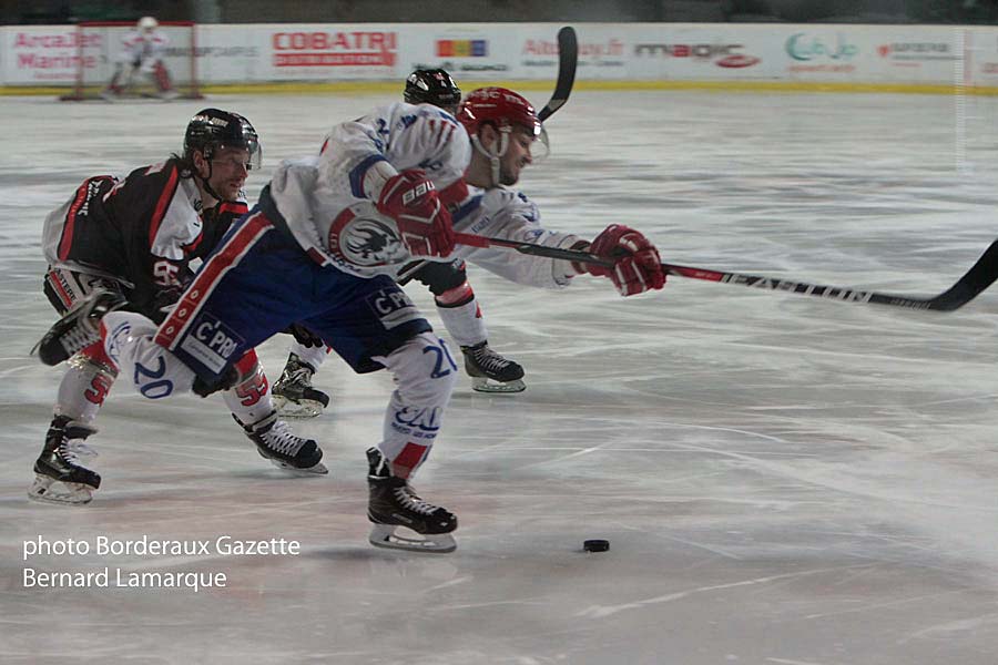 Après avoir gagné leur premier match à Lyon au bout du bout le score du second a été plus franc avec un 2 à 0. Il faut mettre au débit des Lyonnais qu’ils ont joué ces deux match sans leur portier titulaire Pintaric surement le meilleur gardien de la Ligue Magnus avec Seb Ylonen. Le match de ce soir à Mériadeck va être très engagé car les Lyonnais sont coutumiés de ce comportement et ils évoluent en contre prenant rarement le jeu à leur compte, c’est pour cette raison que Pintaric est un joueur clé de leur système de jeu. Ce second match a Lyon a été très serré car les Boxers ne sont arrivés à ouvrir la marque qu’en deuxième période pour ne conclure vraiment qu’en troisième ce qui rend le match de ce soir encore très indécis et surement peu prolifique en but.