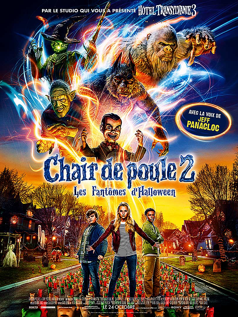 Synopsis : Sonny Quinn et son meilleur ami au collège, Sam, se font un peu d’argent en récupérant les objets dont les gens ne veulent plus. C’est ainsi qu’ils vont découvrir Slappy, une étrange marionnette de ventriloque tout droit sortie d’un livre Chair de poule jamais publié… Slappy a très envie de faire partie de la famille Quinn auprès de Sonny, sa sœur Sarah et leur mère Kathy, mais ses exploits malfaisants vont beaucoup trop loin. Les enfants réalisent vite qu’ils doivent à tout prix arrêter ce pantin diabolique. Slappy décide alors de se fabriquer la famille dont il rêve… en enlevant madame Quinn et en ramenant à la vie tous ses horribles complices d’Halloween. Alors que leur petite ville tranquille se transforme en enfer peuplé d’une armada de monstres en tous genres, des plus terrifiants aux plus hilarants, les enfants et leur voisin, M. Chu, vont tout faire pour sauver leur mère et la ville des plans machiavéliques de l’épouvantable marionnette déchaînée…