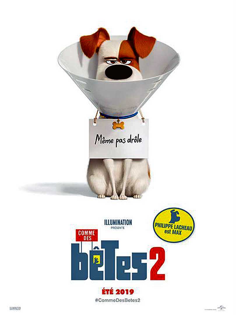 Synopsis : Le Fox-Terrier Max doit faire face à un grand bouleversement : sa propriétaire Katie s’est mariée et a eu un adorable bébé, Liam. Max est tellement obsédé par la garde du petit, qu’il en développe des troubles obsessionnels du comportement. Lors d’une excursion en famille dans une ferme, Max et le gros Duke vont faire la connaissance de vaches souffrant d’intolérances aux canidés, de renards hostiles et d’une dinde monstrueuse, ce qui ne va pas arranger les tocs de Max. Heureusement il va être conseillé par le vieux Rico. Ce chien de ferme aguerri le pousse à dépasser ses névroses, afin de trouver l’Alpha qui sommeille en lui et laisser le petit Liam respirer. Pendant ce temps, alors que son maître est absent, Giget, la petite Loulou de Poméranie, essaie de sauver le jouet préféré de Max d’un appartement infesté de chats avec l’aide de l’imposante Chloe, devenue complètement accro à l’herbe à chat. Pompon, l’adorable petit lapin complètement cintré, pense qu’il a des superpouvoirs depuis que sa propriétaire Molly lui a acheté un pyjama de super héro. Mais quand Daisy, une Shih Tzu téméraire, vient l’embarquer pour une mission périlleuse, il lui faudra rassembler tout son courage pour devenir le héro qu’il n’était pour l’instant que dans ses fantasmes. Max, Pompon, Gidget et le reste de nos petits amis trouveront-ils le courage d’affronter leurs plus grandes peurs ?