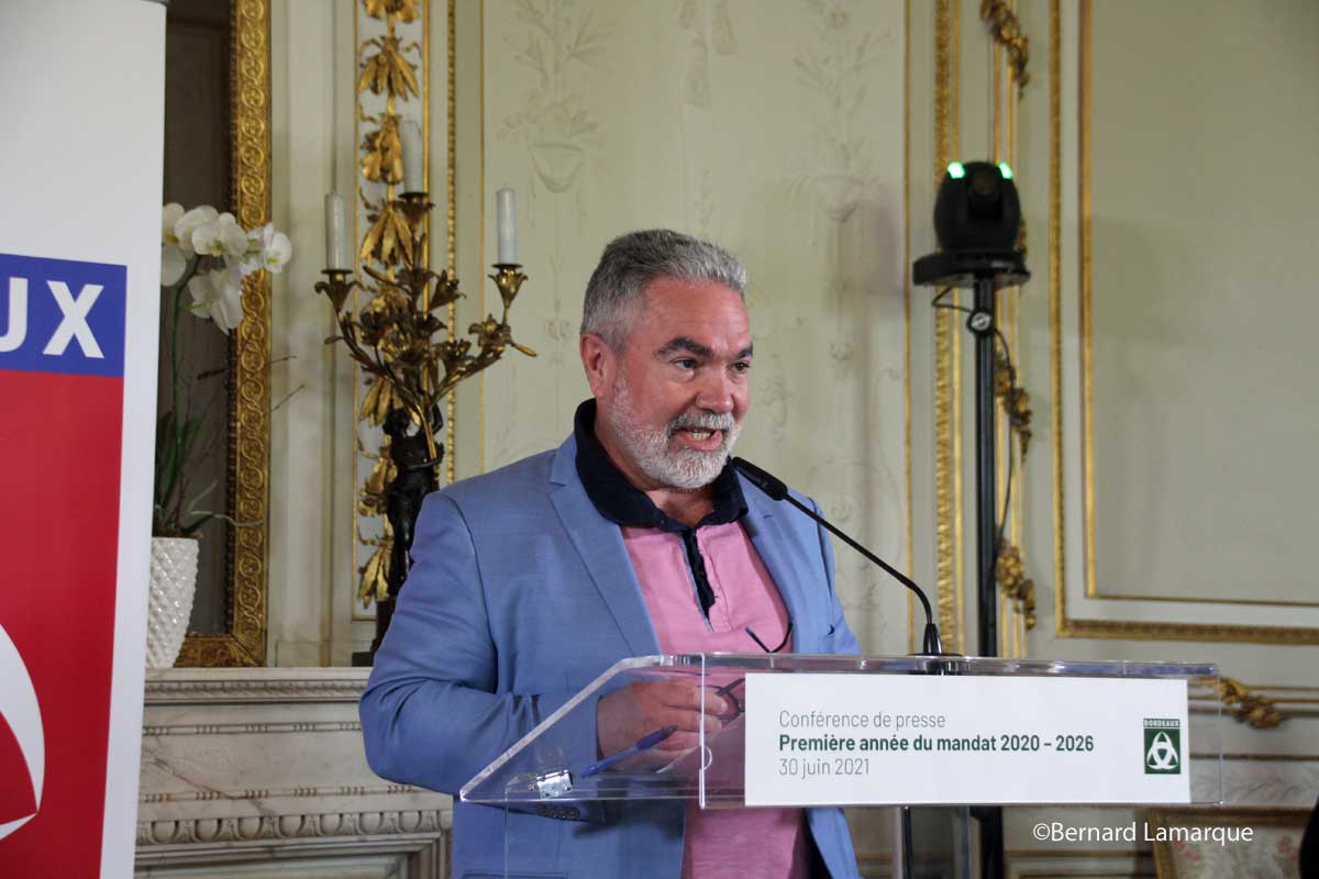 Cette première année de gouvernance a été essentiellement marquée par la crise sanitaire qui dans un premier temps avait très sérieusement perturbé le vote avec un premier et un second tour distant de plusieurs semaines de mars à juin. Après un rappel succinct des événements avec au départ l’appel de Bordeaux en 2019pour lutter contre un entre soi conservateur pour redonner la parole aux habitants. Soulignant l’impatience de certains pour un changement il a précisé : " si certains sont impatients, je suis le premier des impatients et je me suis attaché à réparer la ville ". En même temps il a eu à gérer la crise sanitaire et grâce à l’efficacité des services, cette gestion a été correcte avec la gestion particulière du cluster de Bacalan. Pour lui il faut répondre à trois urgences sans oublier la sécurité : l’urgence écologique, l’urgence sociale et l’urgence démocratique d’où il faut adapter la ville au défi climatique à travers un nouvel urbanisme en tentant d’effacer les ilots de chaleur en faisant appel à la végétalisation. Des changements radicaux au niveau de l’urbanisme sont donc envisagé avec remise à plat de Bastide-Niel, Brazza et la sanctuarisation de la Jallère, il compte bien pouvoir édifier 1 000 à 1 500 logements sociaux par an. Pour lui l’écologie doit jeter les ponts de la démocratie permanente et il a souligné que la culture avait beaucoup souffert durant cette longue période d’une année et demie et beaucoup de projet sont à venir.