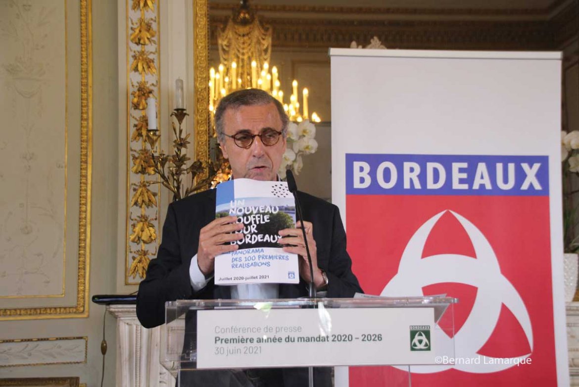 Pierre Hurmic a tenu à faire un bilan de cette première année sans revenir sur la cruelle disparition d’un des maillons majeurs de l’équipe qui a arraché la mairie à la droite en juin de l’an passé.