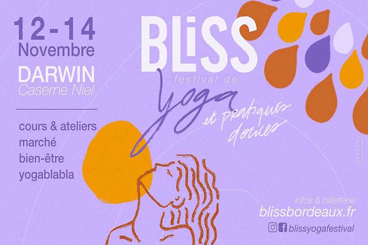 Porté depuis 2018 par l’association Bellibulle en co-production avec Darwin, le festival rencontre un large succès auprès du grand public et des yoginis avertis. Lors de la dernière edition, ce sont près de 800 pratiquants et plus de 3000 visiteurs qui sont venus au Bliss. Résolument ancré en Nouvelle Aquitaine, l’évènement revendique son accessibilité au plus grand nombre et une démarche éco-solidaire. Pour cette 7ème edition, Charlotte Saint-Jean, créatrice et « bonne fee » du festival, sera présente avec plusieurs master-class, ainsi que d’autres intervenants reconnus tels que Christophe Millet, Cyril Moreau, Marie Milla ... Le festival BLISS Bordeaux fédère les acteurs du territoire qui souhaitent partager ensemble leur passion du yoga et leur plaisir de la transmission. La volonté est que ce festival soit avant tout celui des professionnels du yoga et du mieux-être en Nouvelle-Aquitaine ; un moment de partage entre pairs et avec le public, pour privilégier les rencontres et favoriser les projets communs ! Chaque intervenant participe à la création du programme en étant force de proposition. Ce sont une quarantaine de professeurs qui interviennent uniquement sur la base du bénévolat pour vivre et incarner pleinement ce qu’est le Bliss : Be - Love - Inspire - Share - Smile*. S’y ajoute une équipe de 35 “bene Love” qui font également partis du cœur vibrant de l’organisation. Ils accueillent le public, l’informent, l’orientent et assistent les professeurs. Le bénévolat est vital pour des évènements comme le Bliss qui cherchent à résoudre l’equation complexe d’un festival de qualité, non subventionné, avec une programmation riche et éclectique, et des tarifs accessibles pour accueillir un public varié et nombreux.