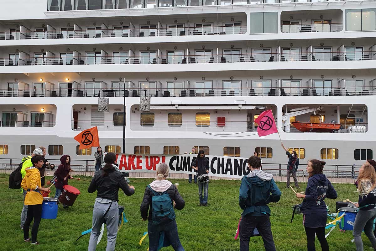 Les touristes du Silver Spirit arrivé(e)s tôt dans la nuit ont eu droit à un réveil un peu spécial de la part des anti-croisières qui dénoncent la pollution apportée par ces paquebots où qu’ils soient et à quelques moments que ce soient car à les entendre tout est nuisible quel que soit le type de propulsion. Surement que les constatations dont ils font état s’appuient surtout sur des unités consommant des fuels lourds alors que la tendance est à l’utilisation de produits de plus en plus léger. De toute manière le mode de propulsion des paquebots se tourne vers le GNL (gaz naturel liquide) comme le Commandant Charcot de la flotte Ponant et le GPL (gaz de pétrole liquide). Ces carburants permettent d’éliminer les particules fines et diminuent la production de CO₂ et des produits azotés et soufrés mais reste des combustibles différents l’un de l’autre. D’autre part un contrat vient d’être signé pour mettre en évidence la faisabilité de l’emploi de l’hydrogène pour la propulsion de ce type de navires dont fait partie le constructeur Ficantieri. Si on peut facilement venir manifester devant un paquebot de croisière sur les quais en ville, on attend toujours une quelconque manifestation face à un porte-conteneurs à Bassens. Ceci dit la manifestation était plutôt bon-enfant et festive avec instruments et banderole pour ce réveil de bon matin des croisiéristes logé(e)s côté bâbord.