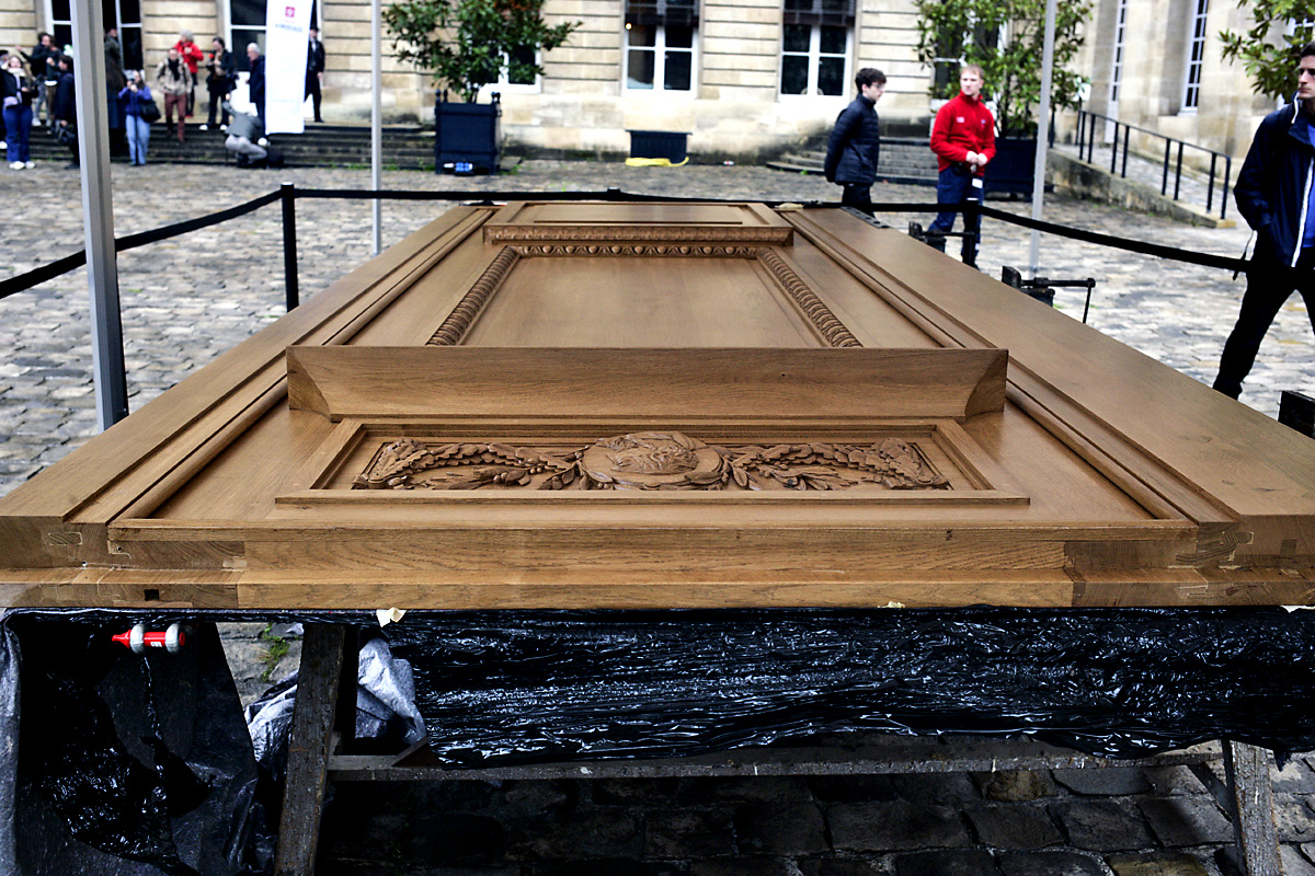 Les travaux, répartis sur 30 mois, ont mobilisé une chaîne complète d’expertise : conservateurs, compagnons, menuisiers, sculpteurs, ferronniers, services techniques, entreprises spécialisées… et l’Agence Architecture Patrimoine, représentée par l’architecte du patrimoine Delphine Gramaglia, missionnée pour piloter la restauration de la porte et des encadrements en pierre.