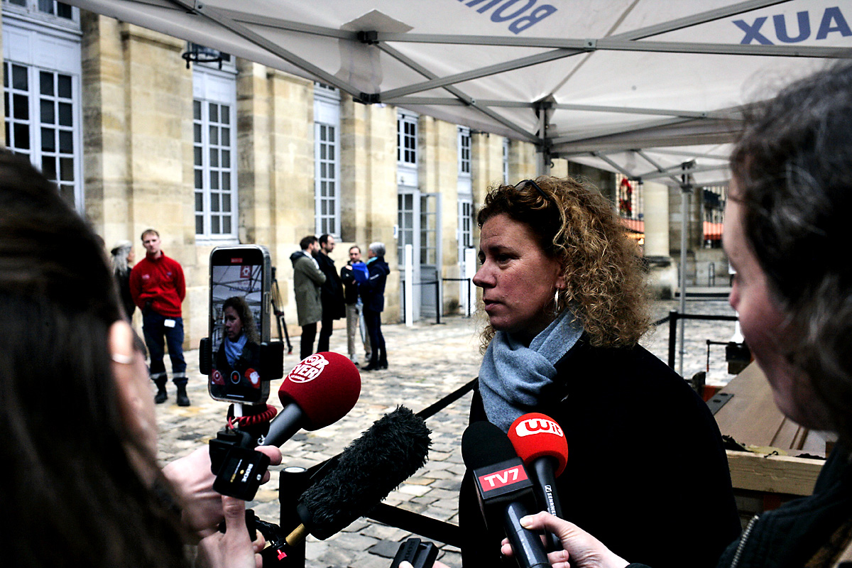 - En présence de Pierre Hurmic, maire de Bordeaux, Delphine Jamet, adjointe au maire chargée de l’administration général et Delphine Gramaglia, architecte du patrimoine.