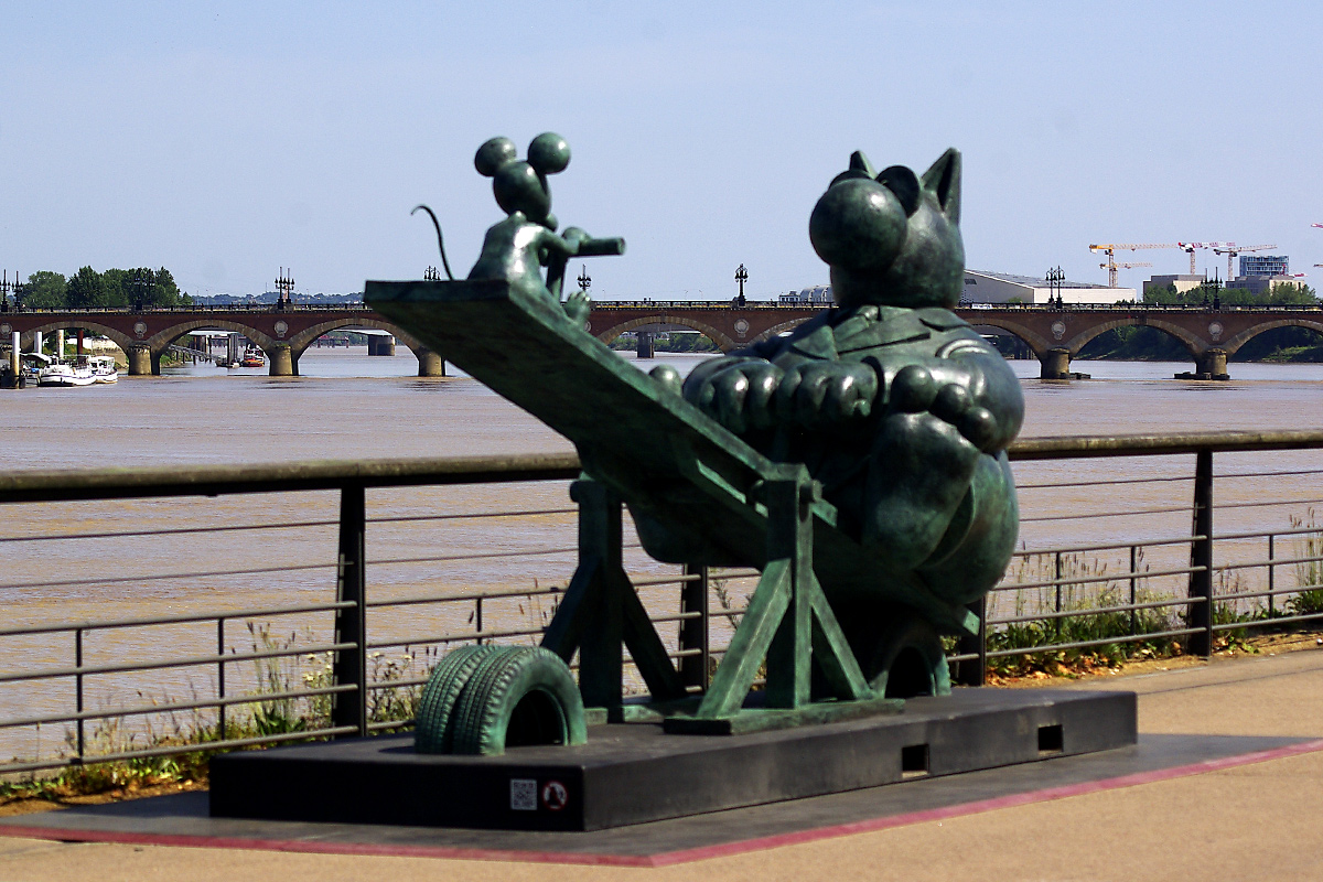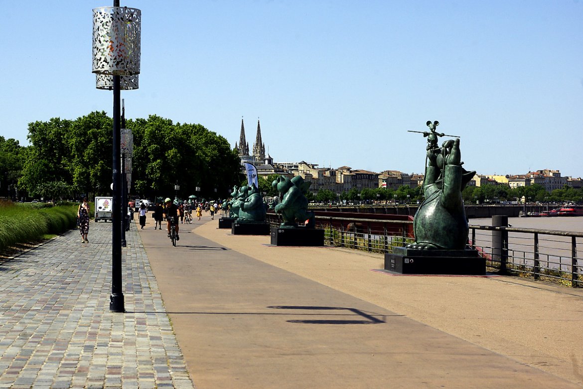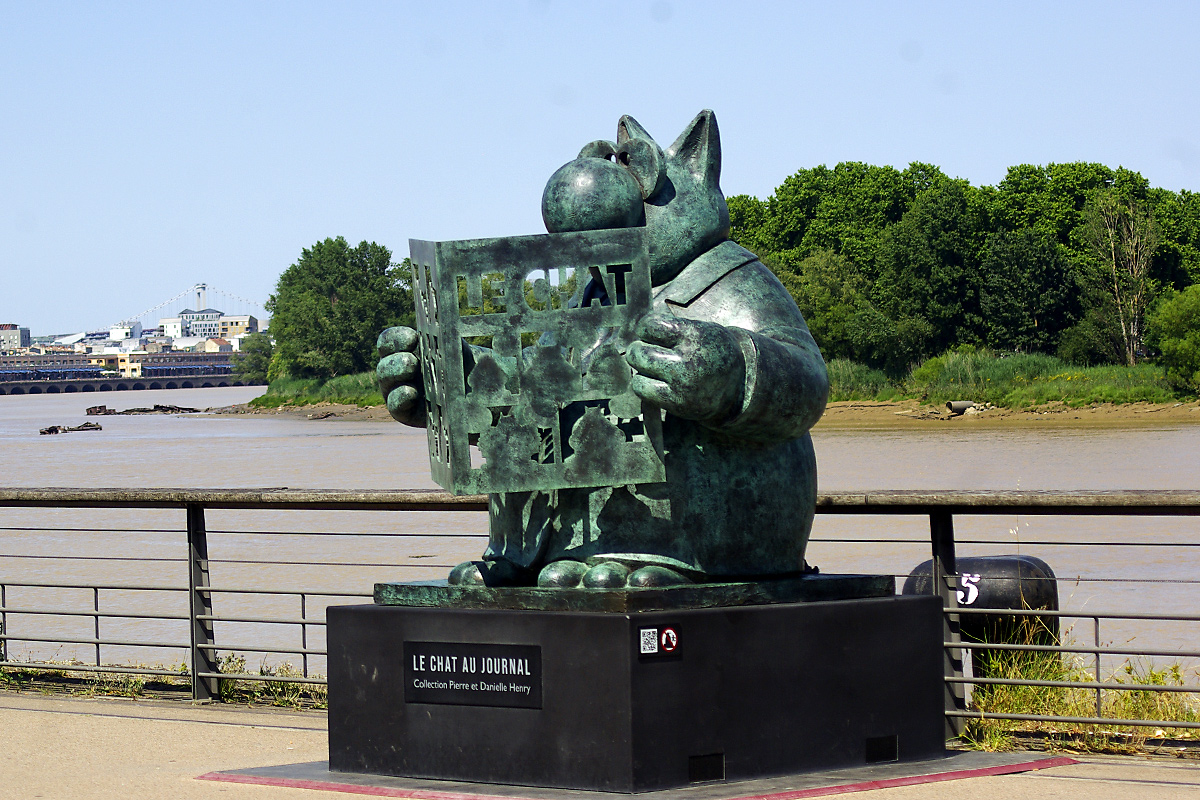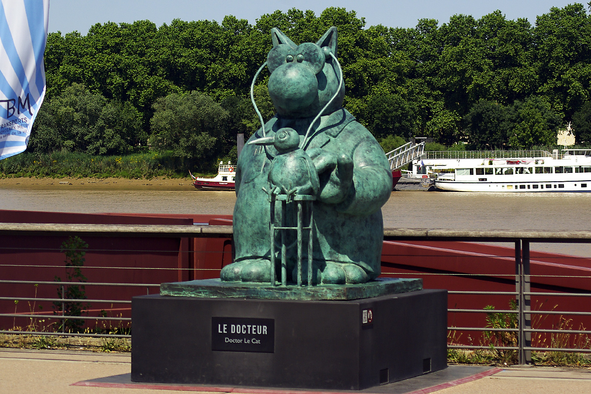 Le dessinateur Philippe Geluck a investi ce matin les quais de Bordeaux avec ses 20 statues de bronze du Chat de sa célèbre série de dessins humoristiques et bandes dessinées. L’exposition sera officiellement inaugurée ce 17 juin à l’occasion de Bordeaux Fête le Vin. Une exposition à découvrir jusqu’au 2 octobre. Un bon remède, plein d’humour et de légèreté en ces temps de COVID19.