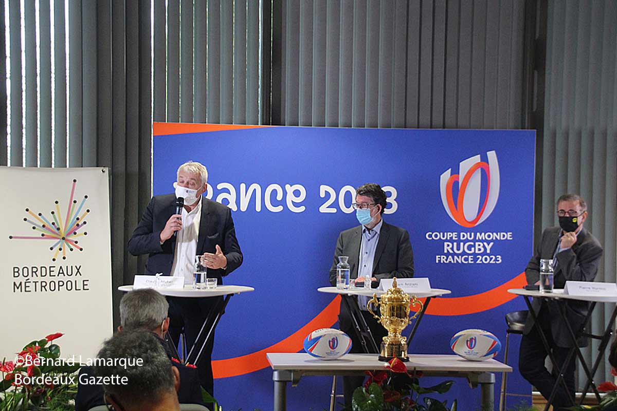 Après le passage du train de la Coupe du Monde gare Saint Jean au mois de septembre pour présenter l’événement au grand public, Claude Atcher était à Bordeaux pour présenter la coupe du Monde à la Métropole car la Métropole accueillera plusieurs matchs de la compétition. Le stade Matmut Atlantique va donc accueillir 4 ou 5 matchs pendant la prochaine Coupe du Monde de Rugby, 10ème édition du genre en fêtant le bicentenaire du rugby. Claude Atcher a présenté une Coupe du Monde qui se veut une fête exemplaire et inoubliable avec 45 jours de passion. Le respect de l’environnement et la formation des jeunes sont mis en avant avec l’ouverture de neuf bureaux dans les villes hôtes afin de déconcentrer l’organisation de la manifestation. Chaque bureau verra à sa tête un directeur ou une directrice de site et à Bordeaux c’est Paul Couet-Lannes qui occupera cette fonction. Il est le visages de France 2023 localement et va animer une équipe de 10 jeunes apprenti(e)s. Recrutée sur place, elle sera formée au sein de CAMPUS 2023, le Centre de Formation des Apprentis créé par le Comité d’Organisation France 2023. Il s’agit de la première promotion de CAMPUS 2023, le Centre de Formation des Apprentis lancé par le Comité d’Organisation France 2023 pour former les professionnels du sport de demain, le recrutement s’opérant à différents niveau de Bac +1 à Bac +3. Au sortir de leur contrat d’apprentissage, d’une durée de 3 ans (décembre 2020 – octobre 2023), toutes et tous seront diplômé(e)s d’un Master « Management d’un Evénement Sportif International ».