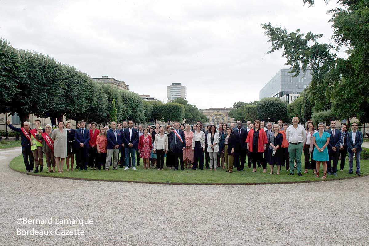 Pour Philippe Poutou qui en aparté définissait sa position lors de son arrivée à l’Auditorium dans les termes " On est pas là pour brailler, mais pour faire avancer les choses", il est intervenu pour dire qu’il était au Conseil Municipal pour apporter la voix des faibles, des plus démunis et des travailleurs sans oublier les gilets jaunes qu’Antoine Boudinet représente, lui qui a perdu une main dans les affrontements avec les forces de l’ordre lors des manifestations de l’an passé. Après de nombreux échanges dans les murs de l’auditorium l’ensemble des élus s’est rendu à la mairie pour permettre la photo de groupe qui une fois n’est pas coutume ne s’est pas servi des marches pour poser, mais pour bien marquer le coup de l’écologie a posé sur la pelouse du Jardin de la mairie pour la photo de famille du Conseil Municipal. Pour la petite histoire un Chaban-Delmas revient au Palais Rohan avec l’entrée au Conseil Municipal de Guillaume Chaban-Delmas, petit-fils de l’ancien maire de Bordeaux en replacement de Julia Mouzon démissionnaire de la liste de Nicolas Florian. Maintenant il ne reste plus qu’à attendre la première réunion du Conseil Municipal qui permettra de connaître le rang et les prérogatives de chacun en observant les chamailleries internes à l’opposition qui ne vont pas manquer de se faire jour.