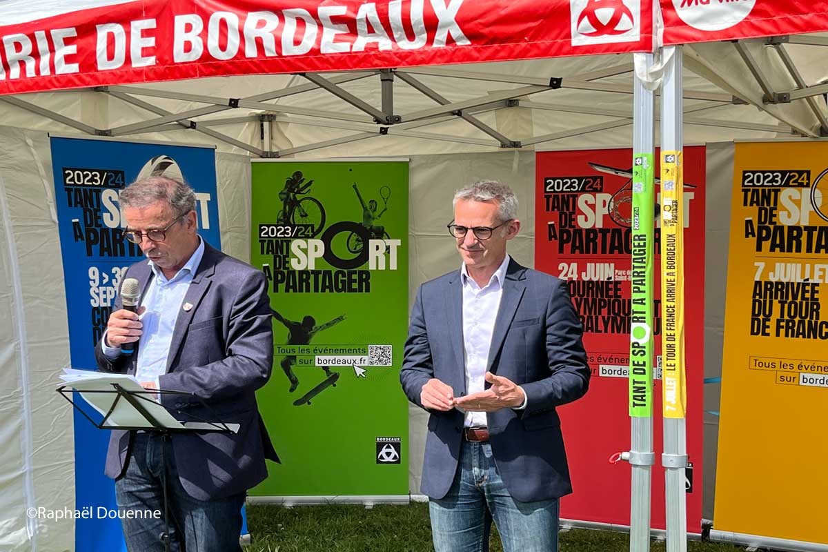 Le sport était à l’honneur hier après-midi à Bordeaux. Pierre Hurmic, maire de Bordeaux accompagné de son adjoint chargé des sports, Mathieu Hazouard ont pu évoquer l’importance du sport pour la ville dans les mois à venir.