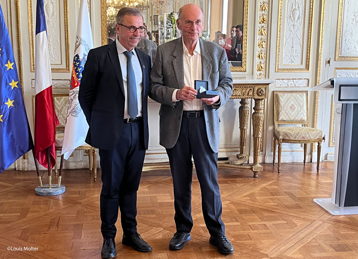 - Boris Cyrulnik présente la médaille de Bordeaux que vient de lui remettre Pierre Hurmic