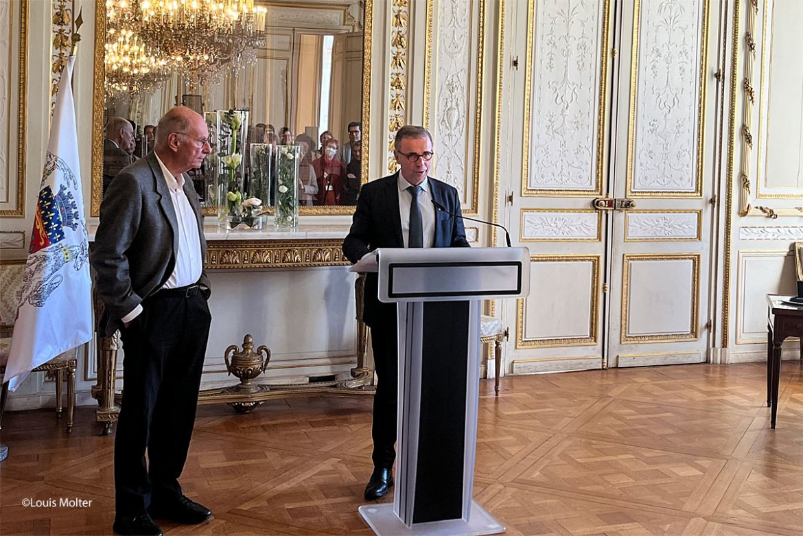 Dans cette vaste pièce aux dorures saillantes scintillent l’esprit de Boris Cyrulnik et la médaille de la Ville de Bordeaux. Une grande première pour le Maire affichant un large sourire au vu de cette récompense qui n’a rien d’anodin. Bordelais de naissance, le psychiatre d’origine ukrainienne et de confession juive naît en 1937 dans « un Bordeaux noir ». Alors âgé de 6 ans, un destin tragique lui est réservé à la synagogue de la ville où il parviendra à se cacher miraculeusement et ainsi échapper aux bras des allemands. Sans parents, l’aide de Marguerite Farges fut cruciale en cette période de guerre. En découle la construction d’un homme, d’un esprit. La présence notable des enfants de cette dernière à la cérémonie a d’ailleurs touché le principal intéressé. Un véritable moment de partage marqué par un devoir, celui de la mémoire.