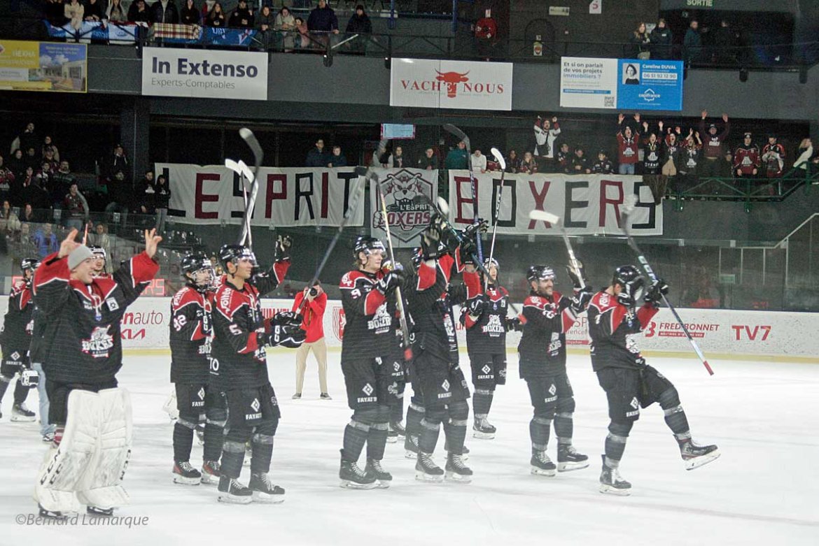Ce match sera notamment marqué par les performance individuelle XXL des cadres de l’équipe. Maxime Legault inscrit un triplé et retrouve ses instincts de buteur au meilleur moment de la saison. Mathieu Pompei sort lui aussi une performance de grande classe, avec un but et trois assistances. Sans oublier Samuel Salonen, qui a confirmé son casque d’or qu’il a subtilisé à Nikita Jefpalovs avec deux buts et une assistance. Cette rencontre valide aussi les progrès défensifs de l’équipe. Victor Bodin semble de plus en plus à l’aise dans la cage, derrière une défense qui continue de s’illustrer, même si les powerplays peuvent être améliorés. Les Boxers abordent donc en confiance la dernière partie du championnat, avec 11 matchs et autant d’adversaire, et 5 à Mériadeck. A voir quel sera le destin des Bordelais en cette fin de saison, qui se déplaceront à Amiens pour leur prochain match le 23 janvier prochain, avant de retrouver la patinoire Mériadeck le 26 janvier pour le match des peluches, face aux Spartiates de Marseille qui pourrait leur permettre de se rapprocher au score pour tenter de se placer à la quatrième place de la Ligue Magnus.