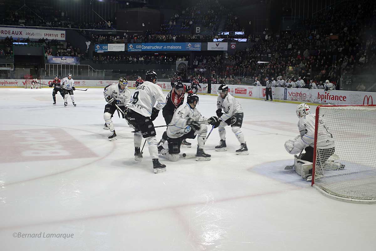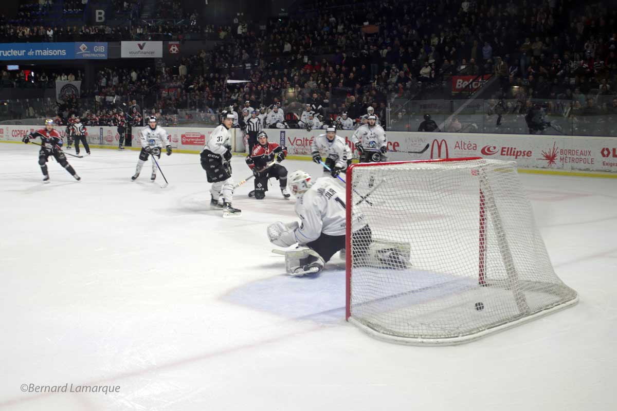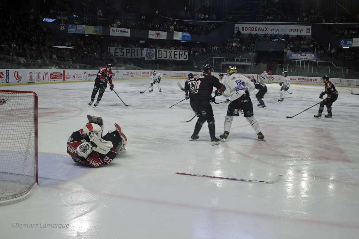 Dominés sur la majorité de la première rencontre, les Marseillais auront quand même affiché un autre visage sur la fin du match 1, bien continué dans le match 2. Plus agressifs, plus provocateurs et plus concentrés, l’équipe de Luc Tardif était bien à l’heure pour continuer d’espérer à une qualification en demi-finales. Les Boxers n’auront pas su garder leur concentration ce samedi. Incapable de réagir aux provocations marseillaises sans perdre leur concentration, l’escouade d’Olivier Dimet se sera fait endormir progressivement, avant de craquer dans le deuxième tier-temps sur deux réalisations de Colombin et Siraudin, contrées par un but d’Enzo Carry, meilleur marqueur bordelais, qui dévie une frappe de Kévin Dusseau pour tromper Ciliak, meilleur gardien de la saison.