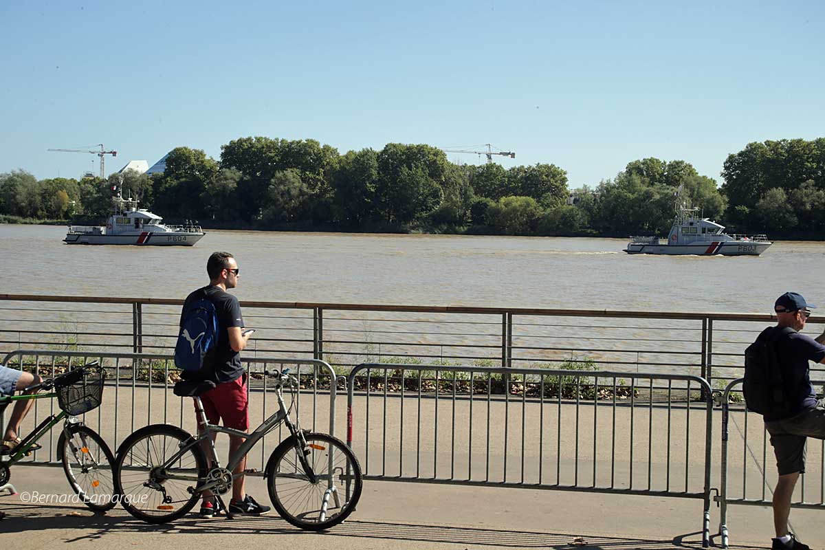 - Des petites vedettes de la police maritime accompagnent la frégate