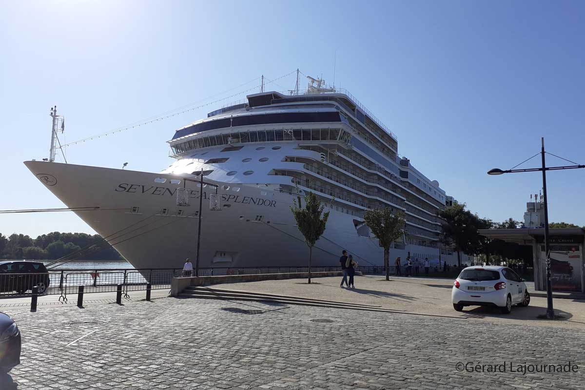 Le Seven Seas Splendor pour sa part est resté beaucoup plus longtemps dans le port de la Lune puisqu’arrivé le vendredi 24 au matin, il est resté jusqu’au dimanche 26 dans l’après midi, ce qui a permis a ses touristes de passer un week-end entier à Bordeaux. Le but ultime de cette croisière partie de Southampton est Barcelone avec le tour de la péninsule Ibérique et des escales prévues à Porto, Lisbonne, Gibraltar notamment. Après il repartira pour une autre croisière en Méditerranée au départ de ce port. Cette unité est beaucoup plus volumineuse avec ses 223,7 mètres de long sur 31 de large, de 55 000 tonnes sortie des chantiers Ficantieri et qui accueille 200 passagers dans des conditions de luxueuses. Les croisiéristes reviennent nombreux depuis quelques temps à Bordeaux signifiant que la vie reprend malgré certaines inquiétudes et cet automne va être une étape cruciale de cette pandémie car la population commence à présenter des signes inquiétants de tension.