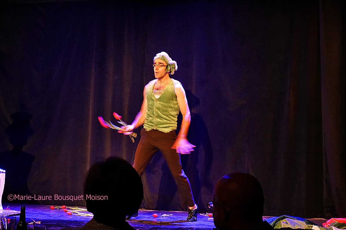 Pour cette nouvelle création, ce duo de fous ; Marie-Claude Chamberland et Émile Carey décapent de leur énergie stupéfiante la scène des Beaux-Arts. Deux clowns aux talents multiples. Une vraie chanteuse lyrique un peu jongleuse et danseuse et un vrai jongleur un peu magicien et danseur, mais surtout deux natures uniques. Une tornade étonnante d’à peu près une heure qui rafraîchit par ses inventions et son humour.