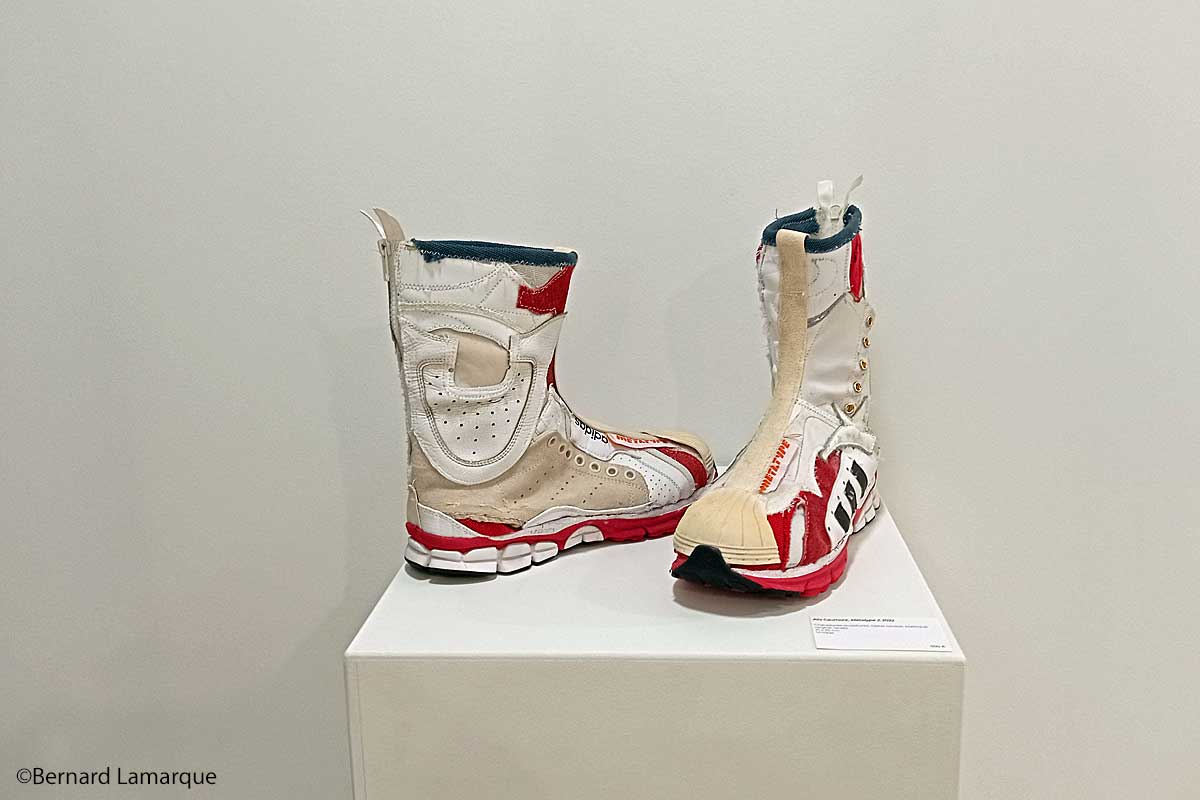 Alix Caumont après avoir obtenu un DNSP*, mention Art et Design à l’école supérieure des Beaux-Arts de Bordeaux s’emploie à mettre en forme des projets en puisant dans des enjeux forts du monde contemporain. Il s’interroge notamment sur nos modes de production, de consommation ainsi que notre rapport aux objets. En ce sens le projet Metatype offre un nouveau regard sur les objets et accessoires du quotidien. Il interprète ici un élément devenu emblématique et omniprésent de la culture du jetable de la fast fashion : le basket. Entre ses mains, les baskets sont réinventées et bénéficient d’une nouvelle esthétique faisant d’elles des modèles uniques, à mi chemin entre sculptures et chaussures.