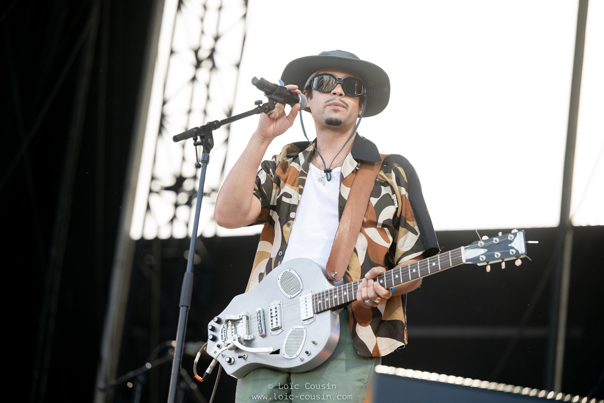 C’est tout d’abord Sopico et sa superbe guitare qui sont venus sur la scène Jean-Louis Foulquier. Du rap frais, nouveau, avec des textes très agréables, sur une mélodie directement jouée avec les instruments de musique sur scène (guitare, batterie, basse), le jeune parisien de 26 ans a mis tout le monde d’accord avec des morceaux de ces trois premiers albums dont celui sorti en 2021 : « Nuages ».