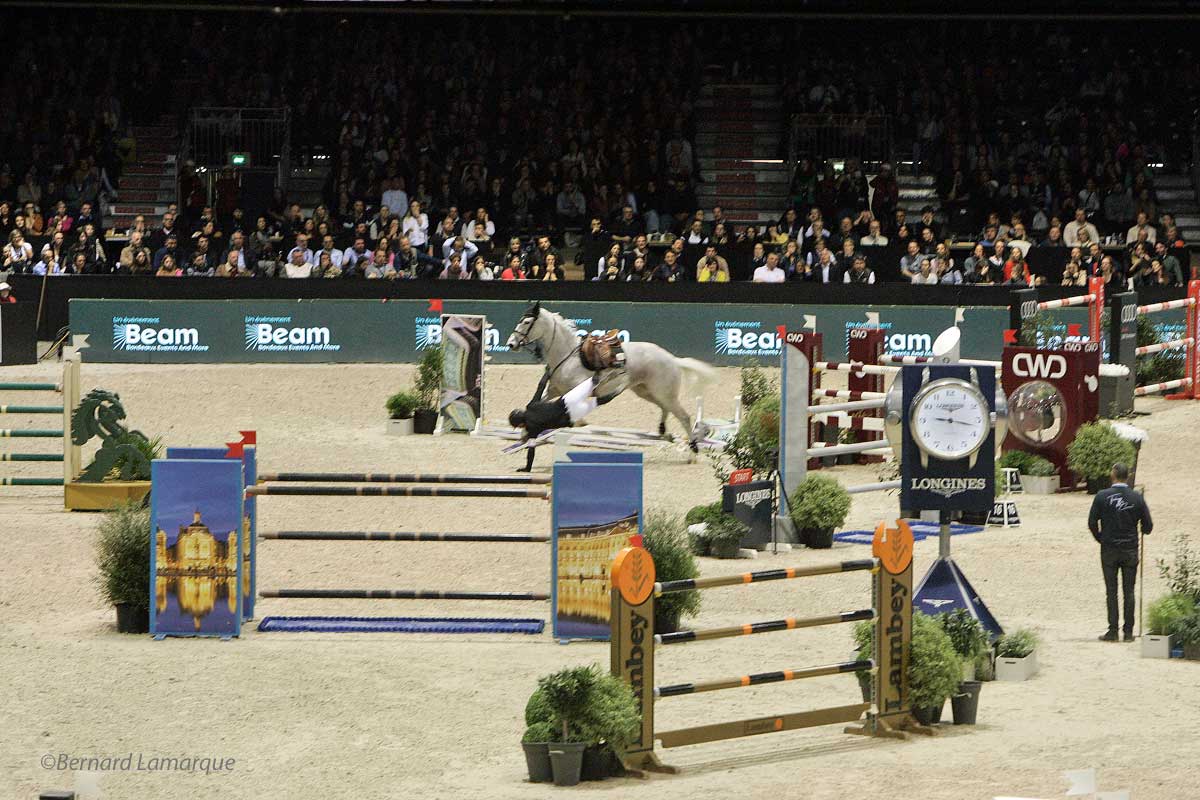 Le troisième qualifié a ainsi été le chevronné et bien connu du public bordelais Roger Yves Bost fidèle de ce jumping après la chute de son compatriote et jeune Edward Lévy lui aussi cavalier français et alors que l’on est au vingt cinquième inscrit il n’y a toujours que trois qualifiés et c’est peu dire de la difficulté de ce parcours très piégeux. C’est le jeune Anglais Harry Charles treizième cavalier mondial qui va être le troisième qualifié et après 28 passages, il n’y avait que quatre cavaliers pour le barrage. L’excellente surprise pour le public a été le parcours de la jeune française Jeanne Sadran qui partie en trente et unième position a déchainée les applaudissements en réussissant un parcours parfait et se qualifiant pour le barrage saluant par là la régionale de l’étape qui reconnaissait après le concours "Cela fait chaud au cœur d’être accueillie comme çà pour une toulousaine à Bordeaux". C’est ensuite le belge Peter Devos qui est venu prendre une sixième et dernière place de barragiste de ce très difficile parcours tracé pour cette première manche du Jumping CSI5*W FEI de Bordeaux. Au cours de ce tour préliminaire on a assisté au crash spectaculaire du cavalier numéro 1 mondial, le suédois Henrik von Eckermann parti en trente cinquième position qui est venu avec son cheval Calizi louper complètement le passage de l’obstacle numéro sept qui demandait un virage serré autour du 12 en sortant du triple.