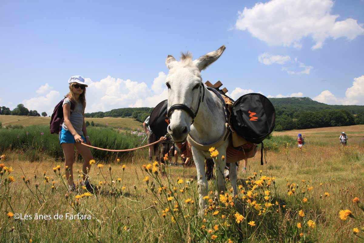 Extrêmement affectueux, l’âne est un animal qui se révèle un excellent compagnon de route pour sillonner les chemins. Le rythme de son pas assuré invite à une autre forme de voyage, celle où l’on prend le temps : le temps de découvrir les petits trésors du paysage et de nourrir notre curiosité. En randonnant avec un âne, vous découvrirez non seulement un animal sociable, malin et surtout créateur de lien. Il devient le centre d’intérêt du groupe, chacun décode et interprète son langage à sa façon, sujet de discussion et de fous rires garantis. Il devient le sujet de discussion de toutes les rencontres, des vrais moments d’échanges avec les autres randonneurs !