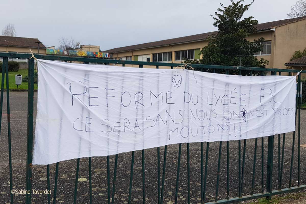 Autre décor au lycée Jean Moulin de Langon jeudi matin. Dès 6h du matin, les lycéens faisaient le pied de grue devant l’établissement soutenus par quelques représentants de parents d’élèves et des gilets jaunes auxquels ils avaient fait appel. Ici, la réforme du baccalauréat et la pilule estampillée « E3C » ont du mal à passer. La répartition de la note finale du bac est un véritable casse-tête pour élèves et parents : si les épreuves finales en terminale représentent 60% de la note, comprenant les épreuves anticipées de français en première, les 40% du contrôle continu reste flous. Ce dernier se divise en 10% du bulletin scolaire et 30% d’épreuves communes : histoire géo, langue vivante 1 et 2, enseignement scientifique, spécialité et sport, comptant pour chacune coefficient 5. A 14h, les premières doivent passer une épreuve anticipée d’histoire. Outre le problème de compréhension, c’est contre un temps de préparation moindre, la différenciation des cours entre les enseignants et la correction par les professeurs du lycée que les élèves ne digèrent pas. « On ne nous a pas demandé notre avis. Les premières épreuves sont passées seulement quatre mois après la rentrée et on n’a pas tous eu les mêmes cours ! » A midi, le directeur d’établissement vient prendre la température. « Il est vrai qu’il y a beaucoup de changements et qu’ils vont vite. Pour les enseignants, il est aussi compliqué de mettre en place une réforme et les inquiétudes sont légitimes. Il est difficile de rassurer les profs qui ont une charge de travail énorme, c’est une réalité qu’on ne peut pas édulcorer. Cependant, tout le monde appelle à une réforme de l’examen car c’est une machine énorme et coûteuse et qu’elle a une part d’aléatoire. Avant, on jugeait sur une épreuve finale. La réforme en cours tente d’apporter une réponse mais la difficulté est sa mise en place et les personnels auraient aimé avoir plus de temps d’adaptation. Aujourd’hui, d’un point de vue logistique, nous sommes en mesure de la mettre en place. » Si certains établissements en avance sur le calendrier des épreuves avaient déjà été sujets à des blocages, le proviseur n’avait aucune idée de la forme qu’allait prendre la contestation. « C’est normal car nous sommes en démocratie mais je suis affecté que les lycéens soient inquiets et en situation de stress. Pas seulement avec la réforme mais on leur dit que les études sont compromises, que leur planète est foutue… Mon travail est de les préparer et de les sécuriser ».