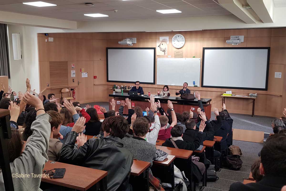 L’assemblée générale ouverte, c’est en abordant la réforme des retraites que les premiers questionnements émergent. « Nous sommes devant un moment historique car c’est l’un des plus longs de l’Histoire de France mais aussi devant un choix de modèle de société. Les fonds dédiés à la caisse des retraites s’élèvent à 14% du PIB du pays. Ce système à points est défavorable car ce ne seront plus les meilleures années de salaires qui seront prises en compte. Le montant des pensions baissera indéniablement et tout le monde va perdre », clame le micro. C’est alors que les bras se lèvent et l’inquiétude des étudiants est grandissante entre deux prises de parole. « On a vraiment l’impression d’être en face de gens qui nous détestent ! » « On est en train de tout perdre, ils nous ont pris notre planète, nos rêves et notre avenir. » Si les soucis personnels (« et pour les présences du coup on sera pénalisé ? ») perdurent, les jeunes semblent avoir saisis l’ampleur de la réforme. « Donc si je comprends bien c’est clairement un système de destruction. » Aux questions généralistes succèdent des interrogations locales comme celle sur la gestion du budget de la CVEC (Contribution de Vie Etudiante et de Campus) payée en début d’année. « Il est censé être dépensé par les usagers donc nous les étudiants. La fac en garde le monopole depuis deux ans et sur 936 000 € , 180 000 € ont été dépensés pour une yourte de yoga et 136 000 € pour des conteneurs… » L’incompréhension vis-à-vis des classes dirigeantes ne cessent de croître et les jeunes semblent résignés devant un avenir incertain. « C’est tout un modèle social qui est en train de s’effondrer. Ils nous ont tout pris, on est en train de tout perdre » s’indigne S. Si la retraite semble lointaine pour les étudiants, les différentes réformes du CAPES et la LPPR (Loi de Programmation Pluriannuelle de la Recherche) les concernent directement. « Il faut savoir qu’après 16 ans d’étude, un enseignant-chercheur qui se divise entre recherche, cours et paperasse et qui commence sa carrière à 34,5 ans en moyenne touche 1 500 € . Nous passons déjà notre temps à chercher de l’argent, l’ouverture des appels à projet pour la recherche signe l’arrêt de mort pour les facultés de moindre envergure. » Les étudiants, tendent l’oreille. A Montaigne, seuls 37% des profs sont titulaires et si elle n’est pas rétro active, la LPPR supprimera nombre de postes de maîtres de conférences. « Le budget de la recherche française s’élève à 2,27% du PIB contre 3% dans les autres pays de l’UE. S’ils nous sucrent les heures supplémentaires, comment faire face aux tâches administratives ? On pense à ceux d’entre vous qui pousseront jusqu’au doctorat… »