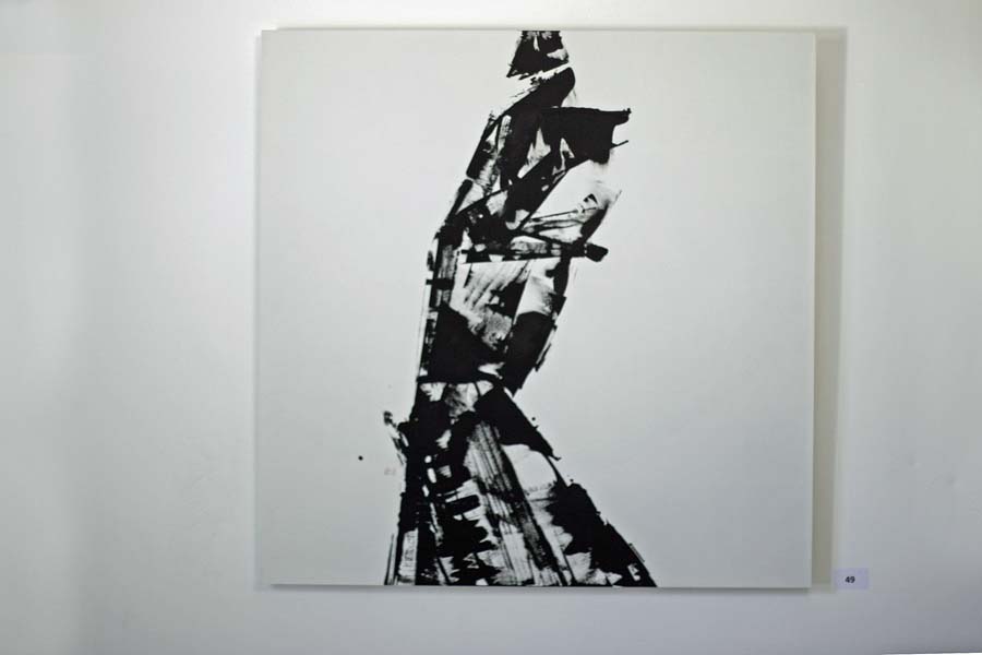 Philippe Hervé, bayonnais de naissance vivant aux alentours de Toulouse est influencé et inspiré par l’impressionnisme et l’expressionisme. « Trace » œuvre (n°49) à l’encre de Chine sur bois non figurative en noir et blanc et fragmentation rappelle peut-être au visiteur la non linéarité de la vie et les chemins difficiles de l’absence de renoncement.