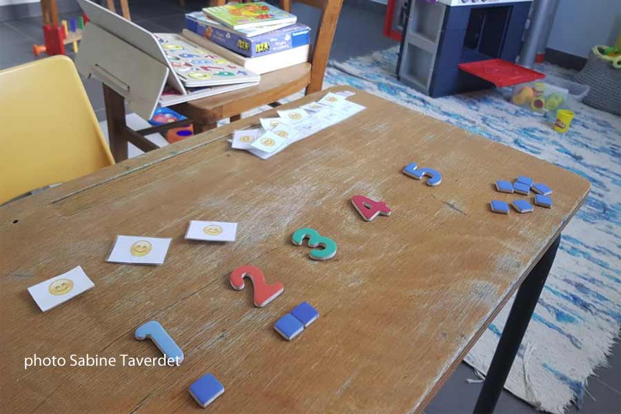 Un lieu chaleureux pour des enfants ayant besoin d’être rassurés mais aussi pour les parents qui ressentent souvent une culpabilité forte même s’il est établi que l’autisme résulte d’un trouble neuro-développpemental dès le développement in utéro de l’enfant. « Ce sont des enfants différents de ceux qu’on peut qualifier de « lambda » mais ils peuvent apprendre ! Les programmes sont personnalisés et on leur livre des outils qu’ils peuvent réutiliser : on apprend à apprendre. » Et la présence des parents est un élément essentiel pour le développement de leur enfant, d’ailleurs les sept professionnels des différents domaines que compte maintenant la structure se rendent régulièrement à domicile pour travailler avec ces derniers :l’objectif d’amélioration de l’autonomie de l’enfant ayant des conséquences sur sa qualité de vie mais aussi sur celle de son entourage. Fonctionnant par demie journée échelonnées de 3 à 15h par semaine et toujours encadré par un adulte référent pour un accompagnement individuel, les deux salariées et les prestataires de service de l’association sont également amenés à se rendre dans les écoles pour soutenir les auxiliaires de vie scolaires et sont en lien avec tous les professionnels travaillant en libéral avec l’enfant pour une prise en charge cohérente.