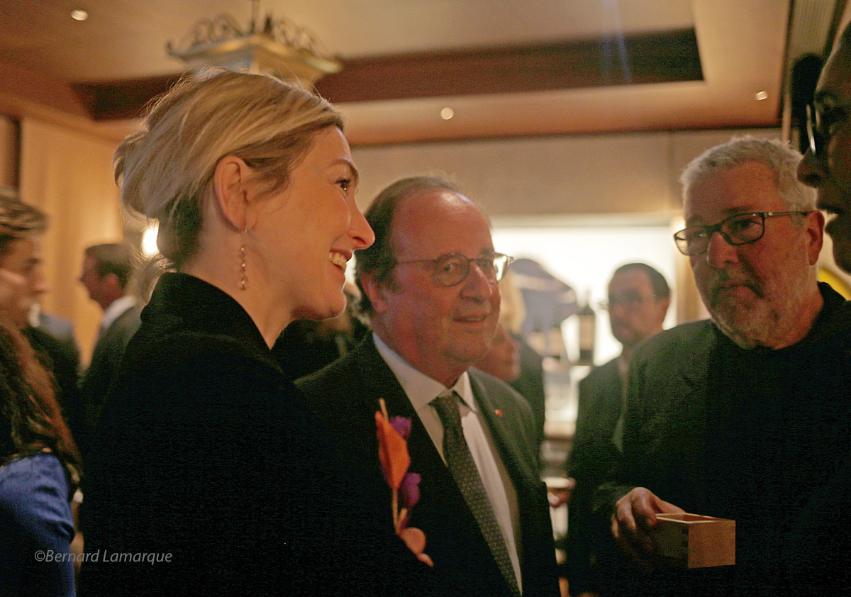 - Julie Gayet, François Hollande et Phlippe Starck en conversation
