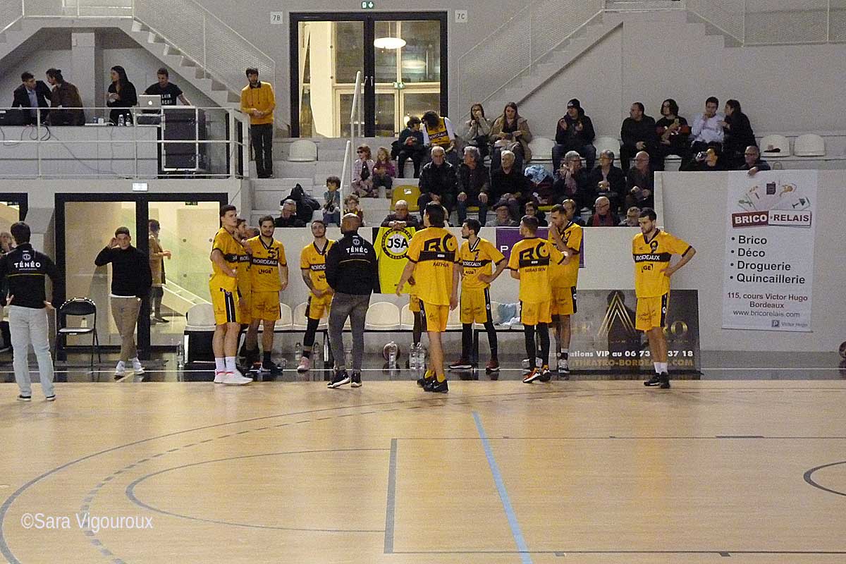 Au retour des vestiaires, le jeu produit par les Bordelais n’est plus du même niveau. Le public reste un peu sur sa faim. Les JSA ont du mal en attaque mais peuvent compter sur une grosse défense. Tous les déplacements et les décisions offensives sont difficiles pour les Boulonnais. Les Bordelais ont mis en place deux types de défenses différentes ce qui a bien perturbé les Nordistes. Ce changement de défense est aussi un moyen pour le coach Joachim DUTHE de « conserver l’attention de [ses] joueurs ». Car ceux-ci peuvent avoir des pertes de concentration. Ainsi, ces changements de défense (zone presse ; zone sur panier marqué et défense individuelle sur panier raté) leur permet de « se concentrer sur les aspects stratégiques du jeu ». Sur cette fin de quart-temps, les Bordelais maintiennent une avance de 17 points sur Boulogne.