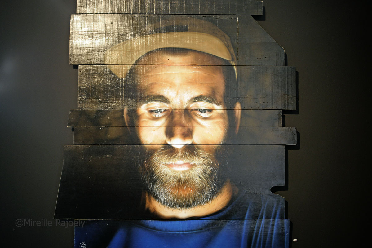 Jean Rooble dessine depuis l’enfance, inspiré par la bande dessinée et les mangas. Très tôt ses premiers portraits apparaissent à partir de photographies. Issu de la culture hip-hop des années 1990, il commence le graffiti en 1999, travaillant d’abord le lettrage plutôt wildstyle, puis les personnages qui lui valent d’être rapidement remarqué avec la précision de son travail. Entre illustration et réalisme photographique, il explore dans ses œuvres des thématiques universelles et humanistes, laissant exprimer, parfois crûment, son besoin de mettre l’être humain face à lui-même. Pour conclure il précise : « Humain, je peins des humains et c’est le fil conducteur de ma vie. Associer le modèle à la démarche c’est quelque chose qui me tient à cœur ». Courez vite regardez à quoi cela ressemble