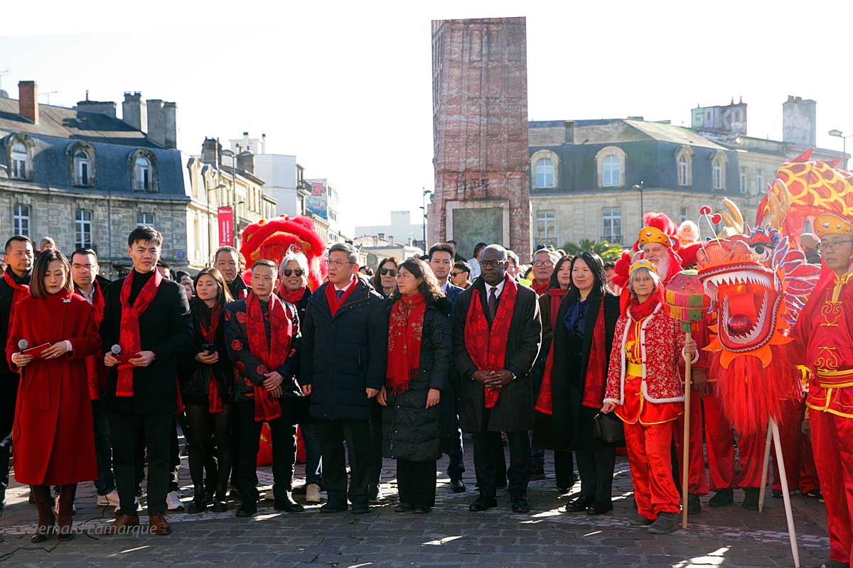 Les officiels réunis place de la Victoire autour de Mr Cheng Dong, ministre et chargé d’affaires de l’Ambassade de Chine en France