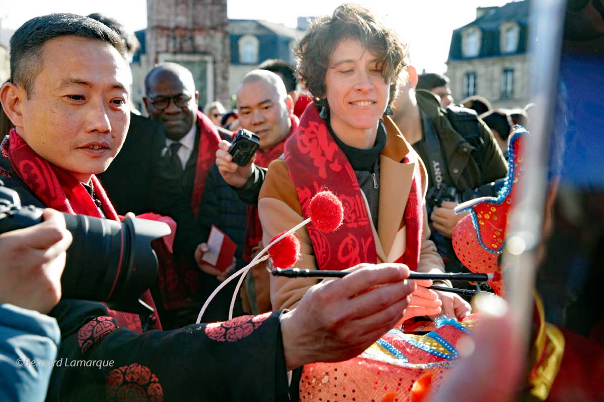Pour réveiller le dragons ont leur peint les yeux et Léa André a été invité à participer a ce réveil avec le Président de l’Amicale Association des Chinois de Nouvelle Aquitaine.