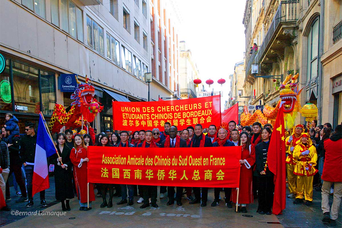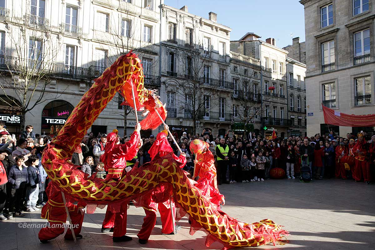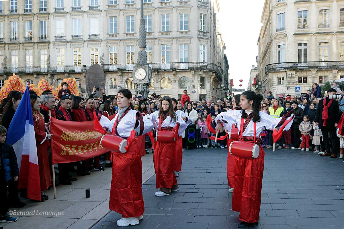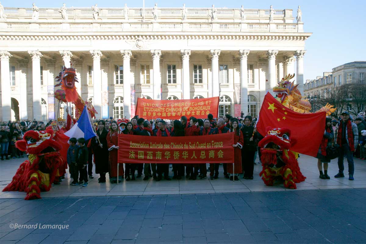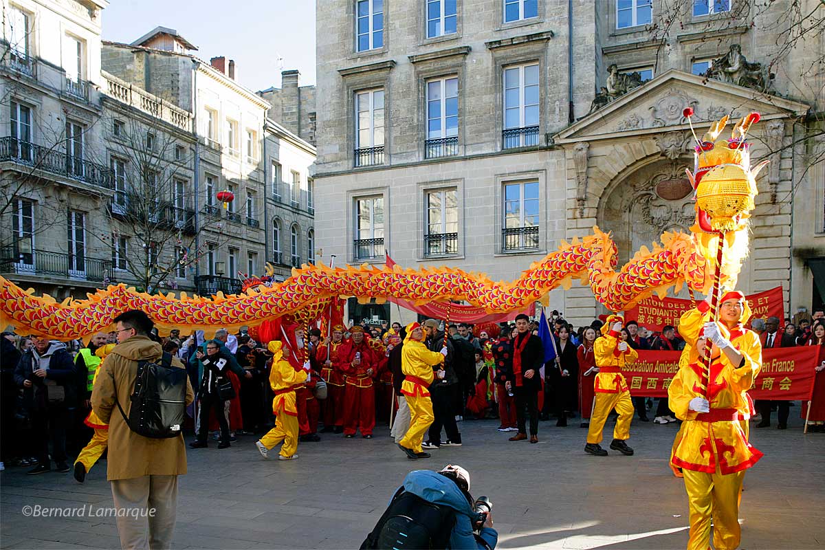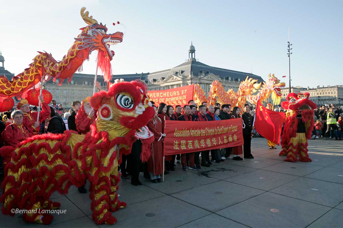 Chaque année, il y a un petit quelque chose en plus pour ce cortège du Nouvel An Chinois qui cette année a déambulé de la Victoire qui reste son point de départ incontournable au Miroir d’eau qui lui a offert une magnifique esplanade pour son final de cette année, celui de l’an passé place Gambetta était dans un espace un peu contraint.