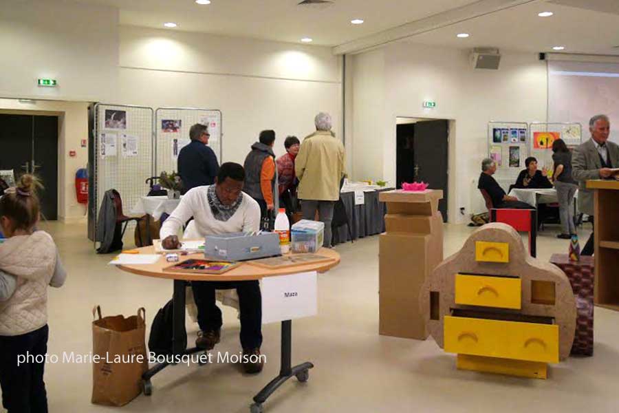 Un peu en marge, l’artiste Maza, présente ses meubles et ses magnifiques tableaux en carton. Une exposition de photographies animalières apporte encore une touche inédite à ce salon.