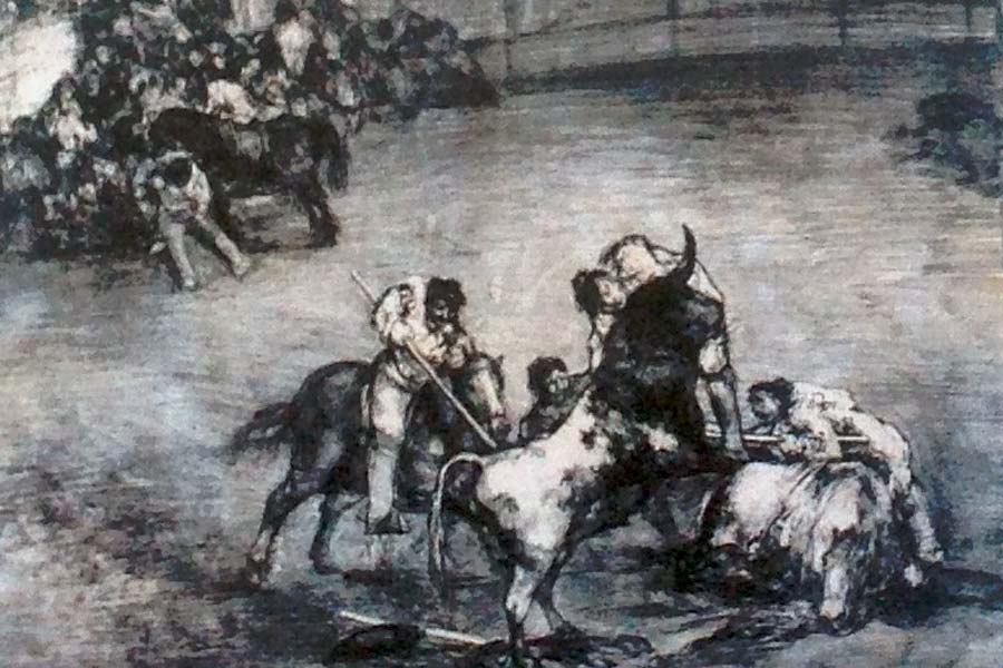 Outre une série de dix planches à l’eau-forte parmi celles gravées d’après Vélasquez en 1778 et un exemplaire du Garrotté de la main de Goya, le cabinet des dessins du musée des beaux-arts de Bordeaux conserve une série de quatre lithographies intitulées les Taureaux de Bordeaux, scènes saisissantes d’effroi et de sauvagerie.