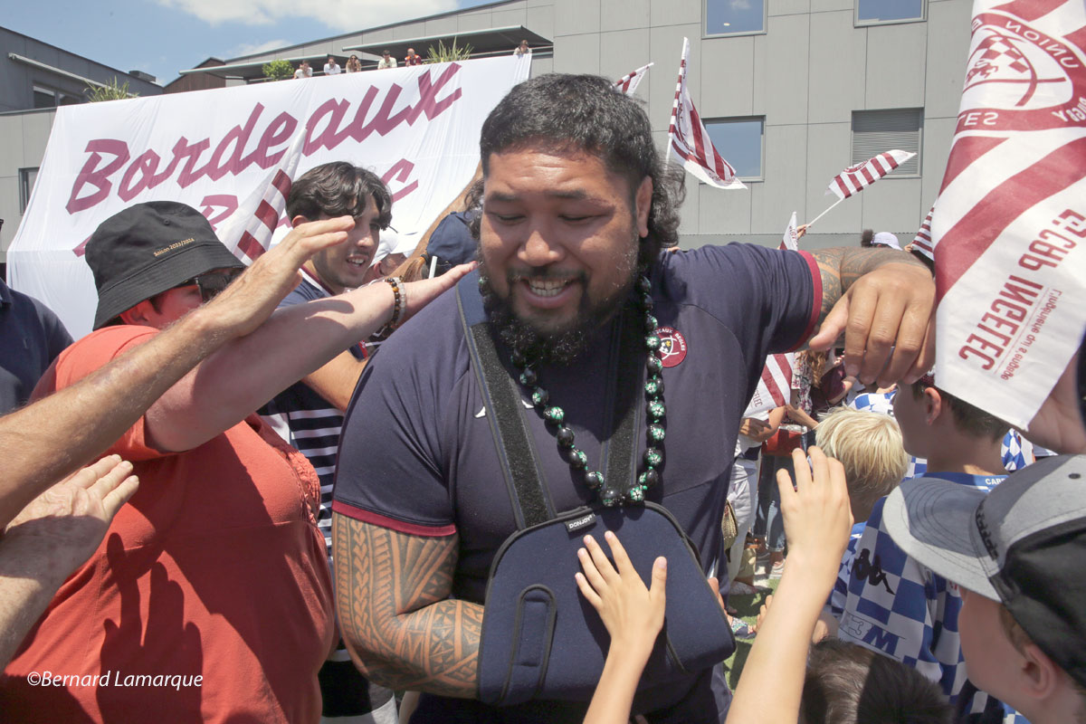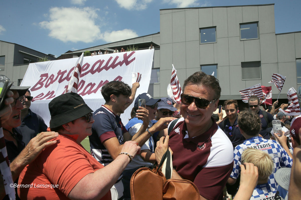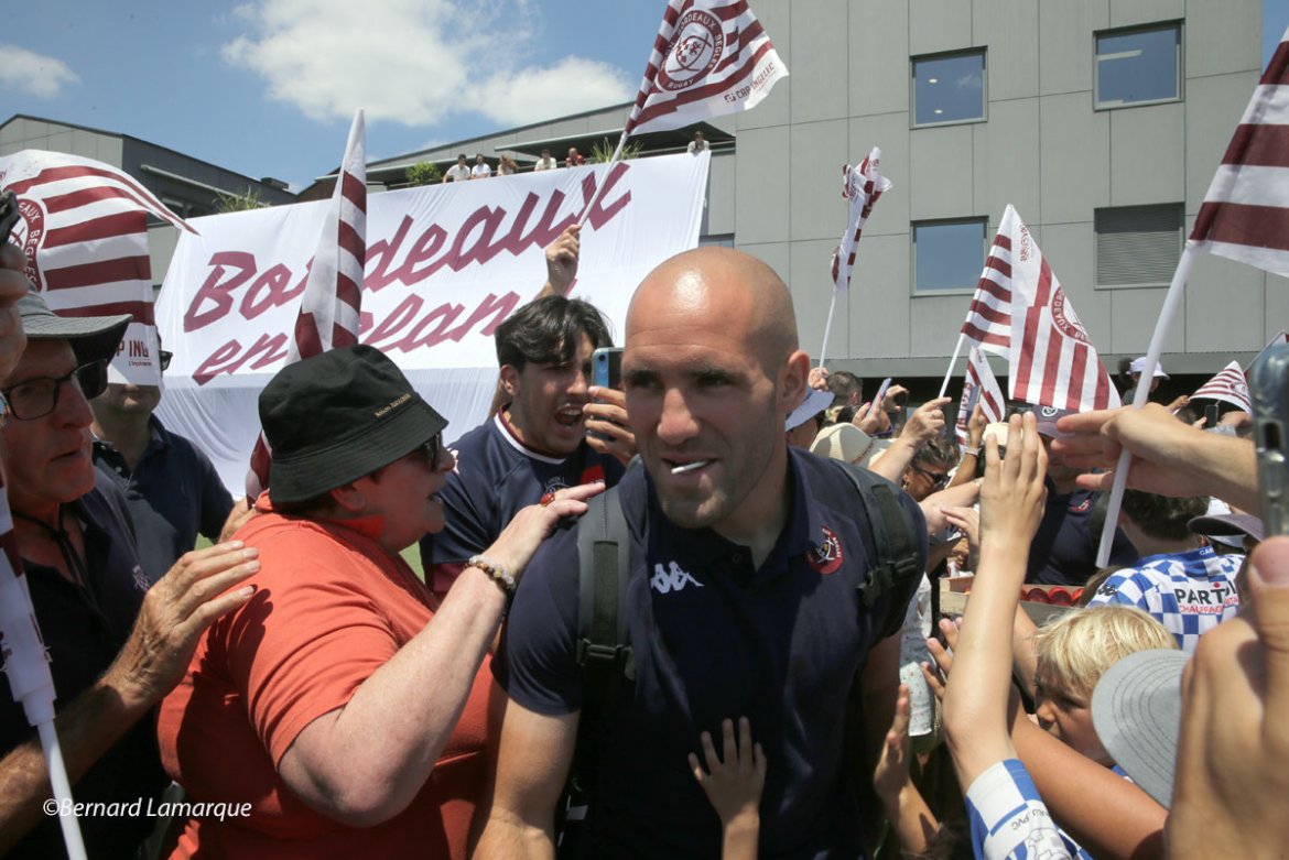 C’est prêt d’un millier de bordelais et bordelaises qui avaient pris rendez vous pour saluer les joueurs qui prenaient la route vers cette finale que l’UBB atteint pour la première fois de sa courte présence en Top 14. Tout le monde présent était enthousiaste à voir ses joueurs partir pour cette rencontre essentielle et les couleurs de l’UBB, le bordeaux et blanc étaient très présentes ainsi que le damier bleu et blanc sur les épaules des efants. Le soleil tapait très fort sur cette foule bigarrée dans laquelle les joueurs se sont tracés une route parmi ce peuple aux anges de saluer ses gladiateurs qui vont défendre les couleurs du club pour cette rencontre. L’intérêt est très fort et il est tel que l’on pourra suivre le match depuis une fan zone sur la place des Quinconces équipée d’un écran géant. Il est sûr que tous les regards seront tournés vers les écrans ce vendredi soir à 21 heures pour suivre le match de l’année. Durant cette soirée tous les bordelais(es) auront les yeux rivés sur ce match et il y a fort à parier que l’ambiance sera au maximum sur les quais à la bodega du club ainsi que dans de nombreux bars qui ont pour habitude de suivre les matchs. Il faut imaginer qu’à Toulouse l’ambiance sera identique, tant les Toulousains sont eux aussi passionnés. Bordeaux Fête le vin qui ouvre dès ce jeudi matin va retenir sa respiration pour cette soirée.