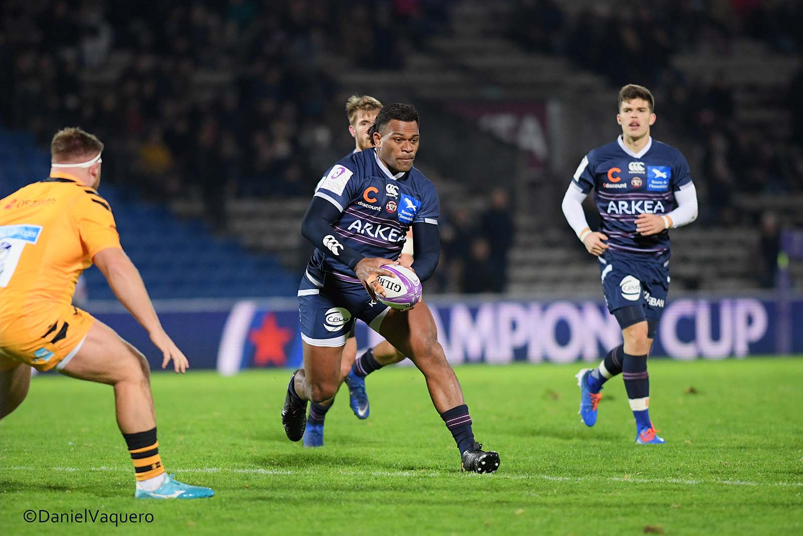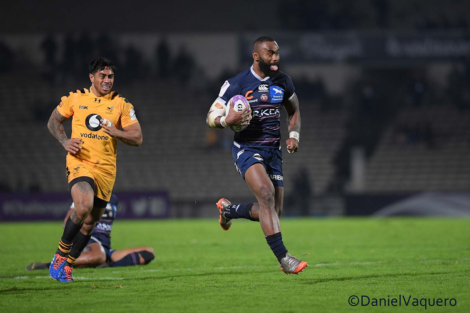La seconde mi-temps s’est montrée plus palpitante sur le plan du score car le chassé croisé a été un instant à la faveur des visiteurs car à la quarante cinquième minute les deux équipes étaient bord à bord suite à un essai et une pénalité des Wasps au retour des vestiaires et si un instant Jilabert redonnait un petit avantage de trois points les Wasps prenaient le commandement sur un essai transformé à la cinquante-huitième minute sur le score de 19 à 23 suscitant un frisson dans le dos des supporters et des cris de joies chez les supporters anglais présents dans le stade. C’est à partir de ce moment qu’on a senti le début des effets bénéfiques du remplacement avec la puissance de Kovekalu, d’Higginbotham et de Marais ou en moins de cinq minutes après avoir était mise en difficulté sur sa ligne elle marquait deux essais sur un raid de Radradra bien servi par Seuteni qui offrait le ballon d’essai à Lesgourgues et l’autre tout en puissance avec deux relais de Kovekalu, Pélissié terminé par Higginbotham entre les poteaux. Les visiteurs n’ont rien lâché et sont revenus un instant à 33 à 30 mais une dernière relance rapide sur une récupération de Buros a permis à Jalibert de percer plein champ pour redonner le ballon d’essai du bonus offensif à ce même Buros.