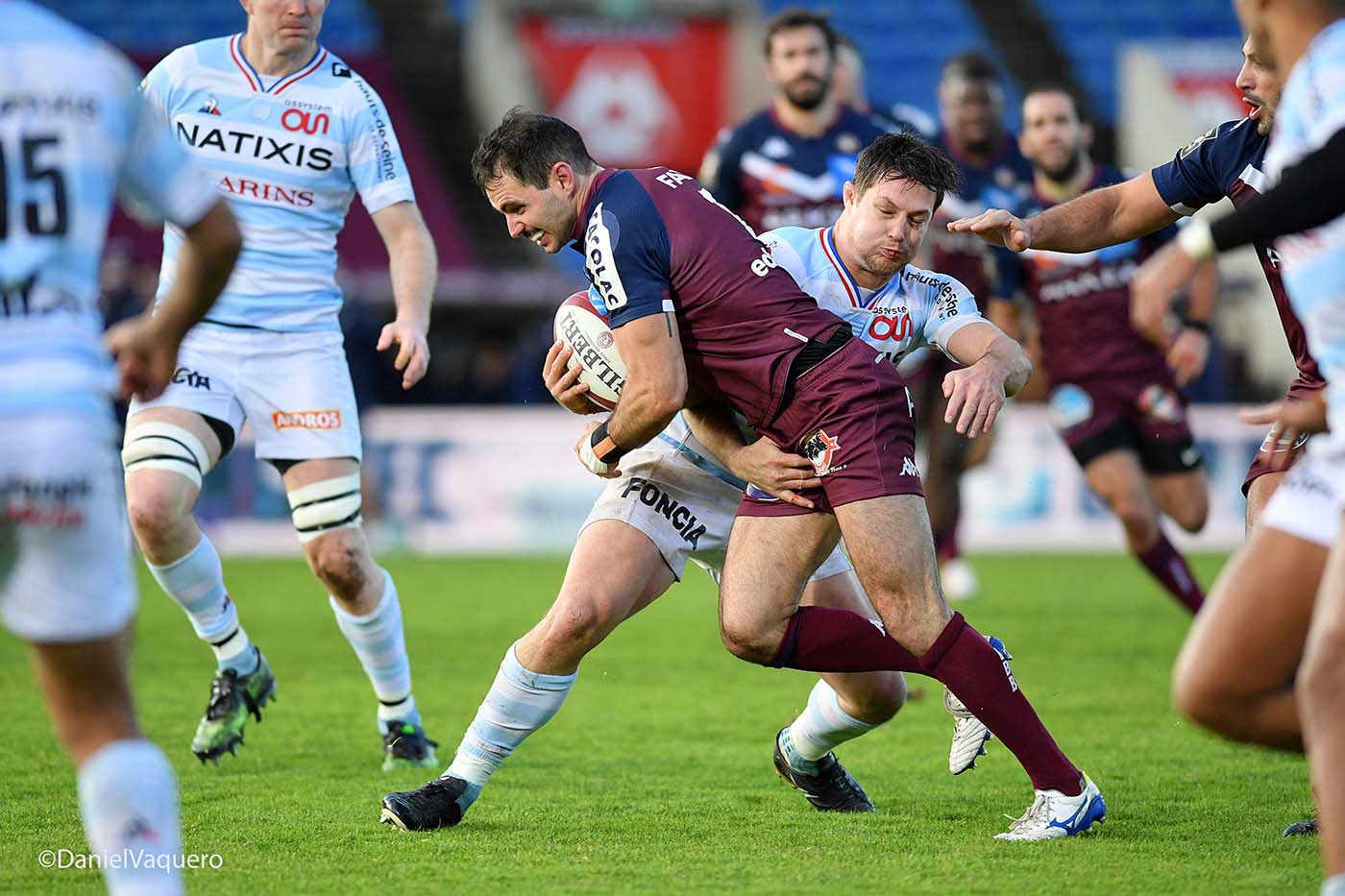 Aucune des deux équipes ne s’est lâchée sur ce match très serré qui a vu la victoire sur une réalisation assez personnelle de Teddy Thomas à la manière de ce qu’il avait réalisé devant l’Italie avec ce subtil coup de pied à suivre qui lui a permis d’aller aplatir dans le dos de Lucu, ce dernier ne pouvant se retourner assez rapidement pour protéger le ballon qui roulait vers l’en but. Il faut dire qu’à cette soixante quinzième minute alors que les deux équipes étaient dos à dos, douze à douze le nul se profilant au bout du chronomètre, c’est sur un ballon porté qui semblait vouloir se déployer grand côté que Lam s’est glissé en défense vers le large et Iribaren prenant le ballon des mains de Chat, au lieu d’aller dans le sens qui semblait être celui du jeu au large, a renversé côté fermé pour servir Teddy Thomas qui a effacé le dernier défenseur d’un petit coup de pied à suivre pour lui même que Lam revenu a vainement tenté de contrer en l’air, et que son auteur est venu claquer dans l’en but bordelais, faisant basculer le match en faveur des visiteurs. Iribaren ne réussissant pas à transformer le Racing Métro 92 laisse un point aux bordelo-béglais.