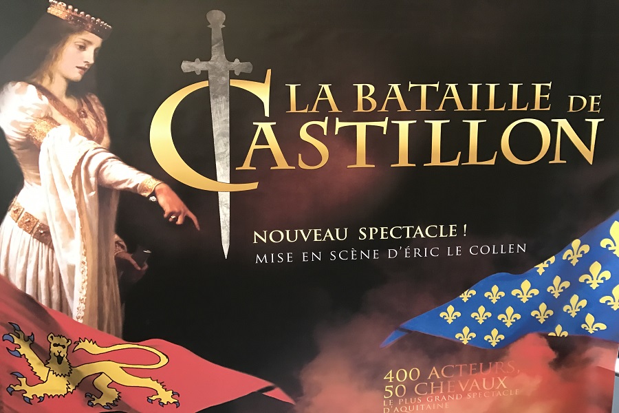 Devenu au fil des années le plus grand spectacle de Nouvelle Aquitaine, la Bataille de Castillon réunit chaque fin de semaine de juillet et août des centaines de bénévoles pour redonner vie à un épisode majeur de l’histoire de France. Celui-ci marque à la fois la fin du Moyen-Age et de l’Aquitaine anglo-gasconne avec la fin de la Guerre de Cent ans en 1453. Basé sur la commune de Belvès de Castillon, au pied du château de Castegens, le site de la Bataille de Castillon a accueilli depuis 1977 plus de 800 000 spectateurs venus du monde entier applaudir le travail réalisé et le talent des 400 acteurs bénévoles et des 50 cavaliers. Pour cette édition 2017 qui fêtera les 40 ans de l’événement, ce sont 40 000 spectateurs (10 000 de plus que l’an dernier) qui sont attendus lors des 15 représentations qui auront lieux entre le 13 juillet et le 20 août.