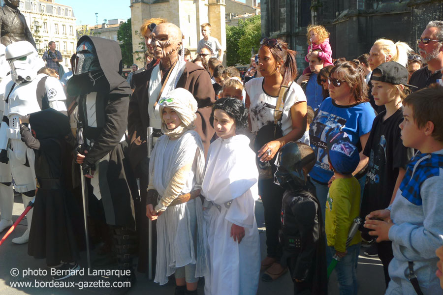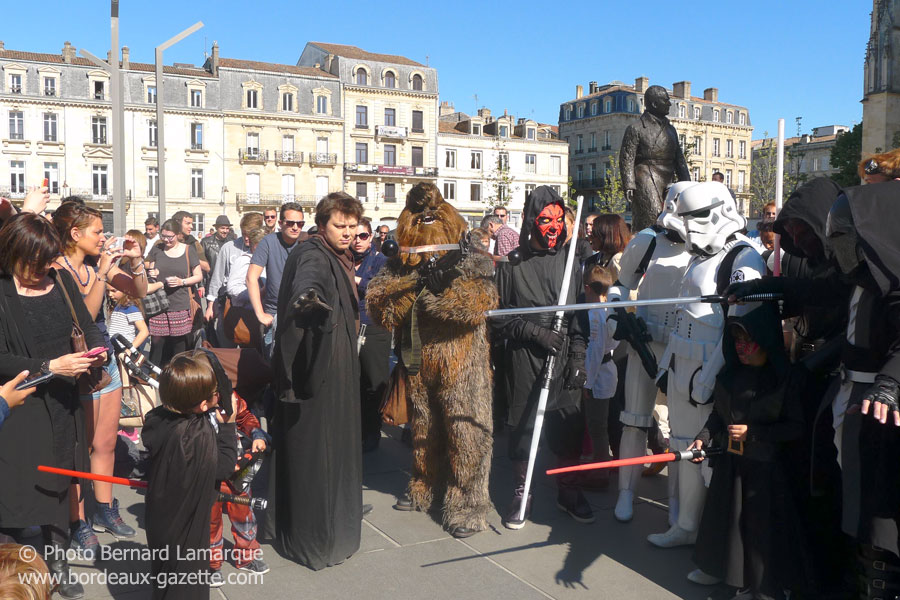 Pour fêter la journée Star Wars « May The 4th Be With You », le Bordeaux Geek Festival, qui aura lieu dans un peu plus d’une semaine, et la communauté des Fans Star Wars Bordeaux se sont associés pour organiser une parade dans les rues de Bordeaux.